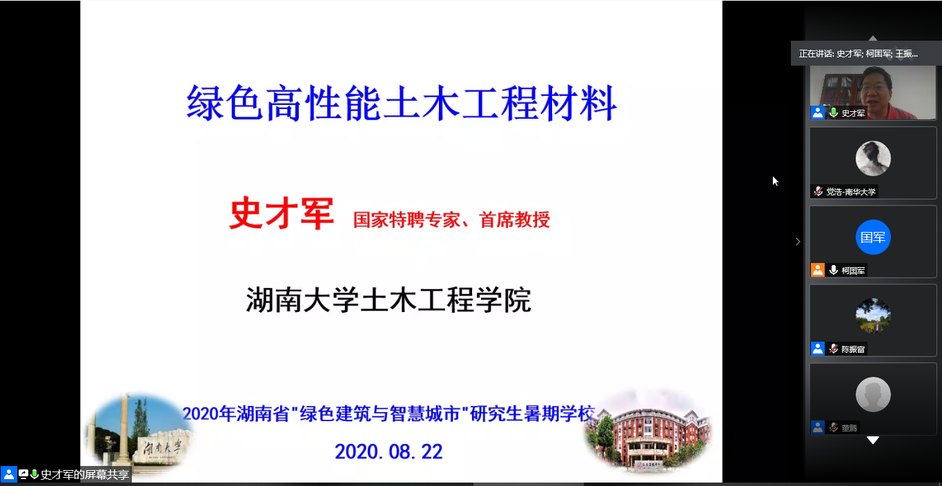 8月22日,湖南省2020年“绿色建筑与智慧城市”研究生暑期学校进行第六天教学。