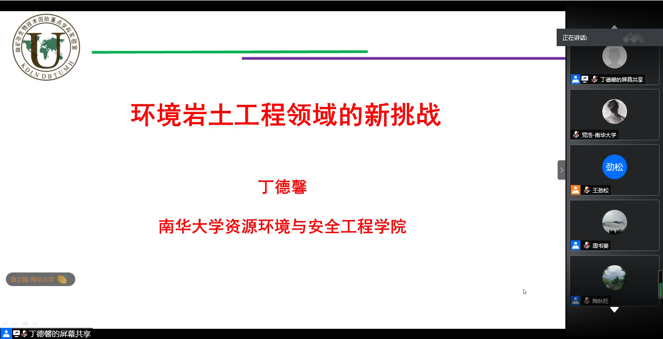 上午9:00,我校丁德馨教授作学术报告,题目为《环境岩土工程领域的新挑战》,我院王劲松副院长主持。丁教授就环境岩土工程要处理的问题和面临的挑战,结合专业最新动态和自身科研做了精彩的报告。随后丁教授对学生提出的一些问题和想法进行了解答,并指出比解决问题更重要的是找出问题,希望同学们能有一双发现问题的眼睛。