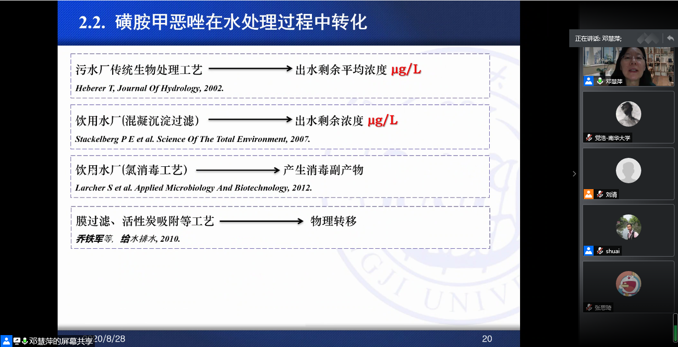 下午15:00,由同济大学邓慧萍教授作学术报告,题目为《水中微量PPCPs类污染物基于光解的转化机理研究》,我院刘清副院长主持。邓教授根据自己课题组的研究依次介绍了水中微量PPCPs类污染物基于光解的转化机理的研究背景、研究内容和存在的问题,为我们带来了一种思考和解决问题的方法。随后邓教授与同学们就研究内容与方法进行了深入交流。