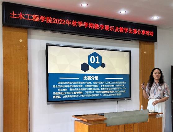 2022年9月22日上午10时,土木学院在三楼会议室325举办了2022年秋季学期教学展示及教学比赛分享活动,本次活动由孙冰副院长主持,参与分享的老师分别为2022年湖南省课程思政比赛一等奖获得者柯国军老师、2022年湖南省普通高校教师课堂教学竞赛一等奖获得者及湖南省普通高校“教学能手”彭楚澌、英国365集团督导组组长刘源全老师。