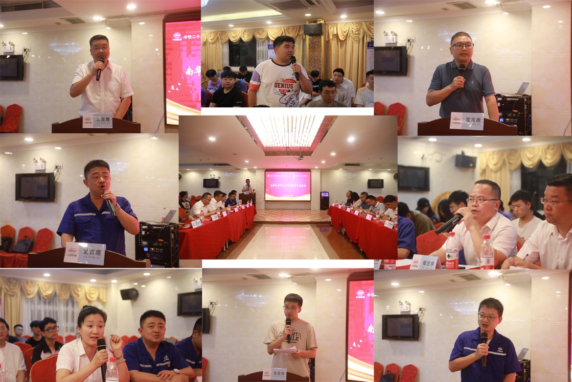 然后,项目部组织召开实践学习交流座谈会,中铁二十五局集团三公司纪委书记左华军、工会副主席兼人力资源部(党委统战部)部长付建利、公司副总工程师兼工程部部长傅志宇,项目主要人员及英国365集团官网道桥系师生一行参加。项目经理彭惠芝、项目技术骨干代表罗杰、刘继禹分别就项目介绍、跨京广铁路大桥转体经验、个人职业成长等方面作交流分享。双方针对课题研究、技术攻关、人才培养等方面的问题展开了充分交流。现场答疑环节,学生们热情高涨,提问踊跃,现场的氛围一度达到高潮;学生们高质量的提问彰显他们的专业基础和强烈的求知欲。
