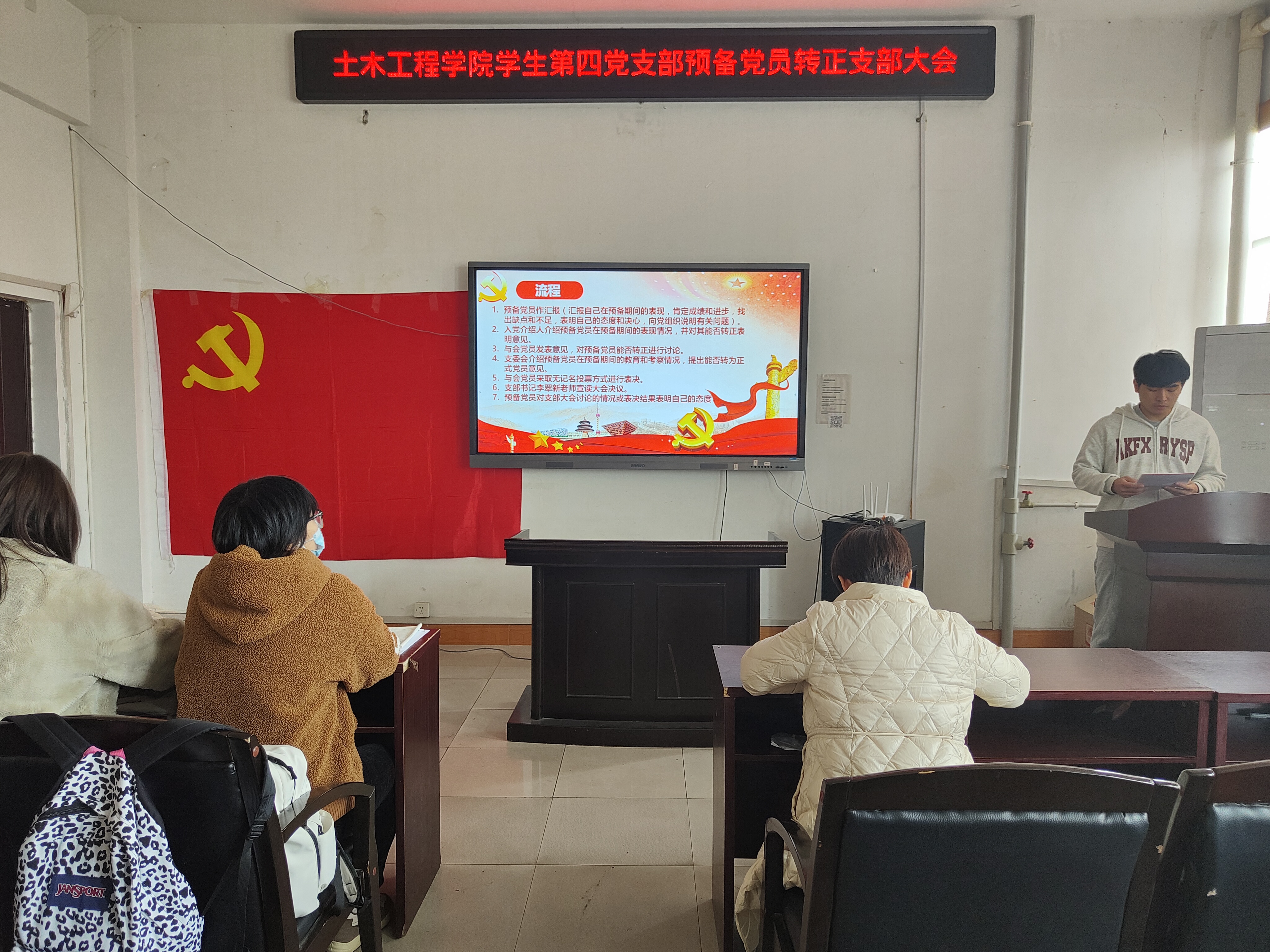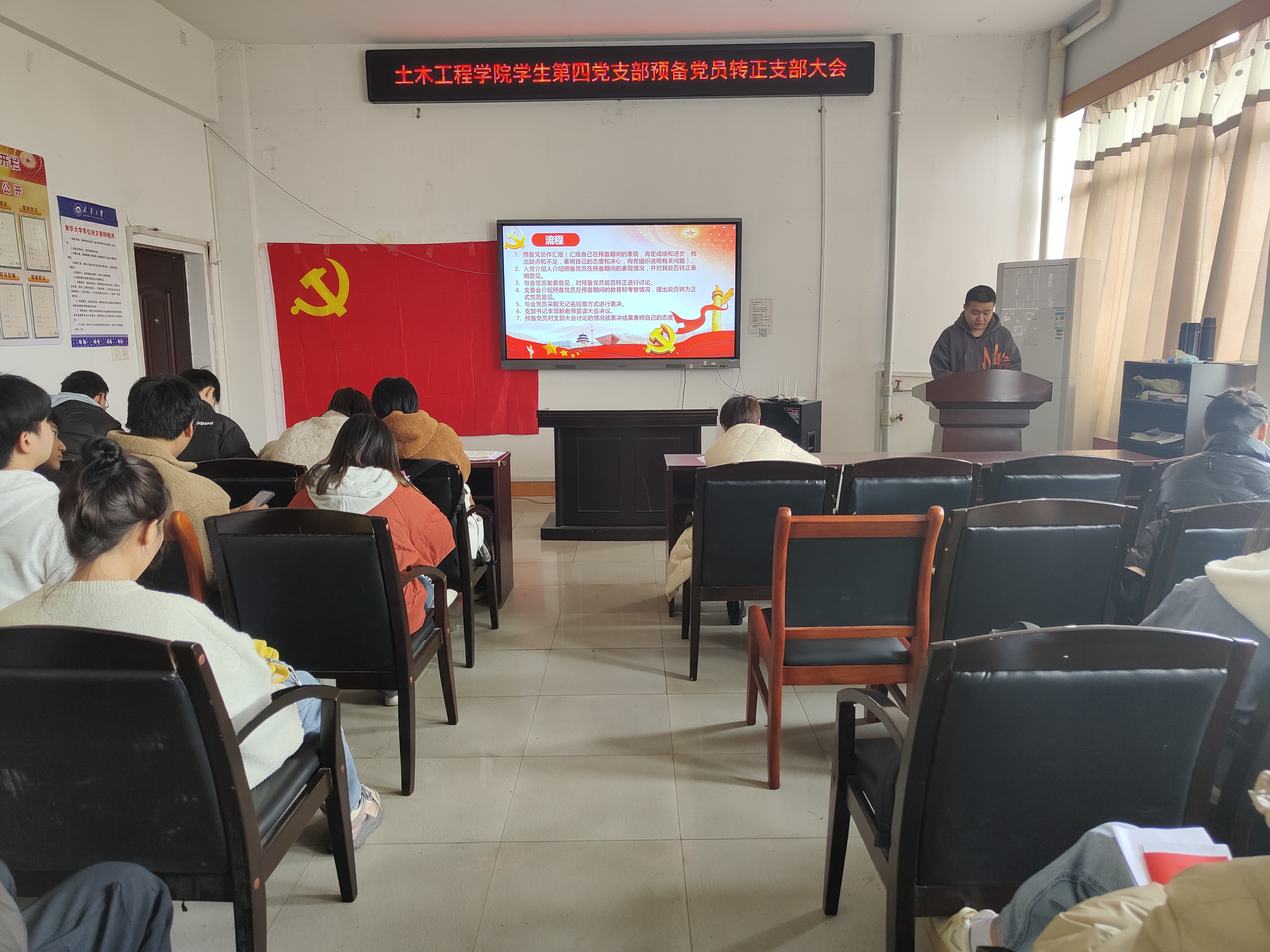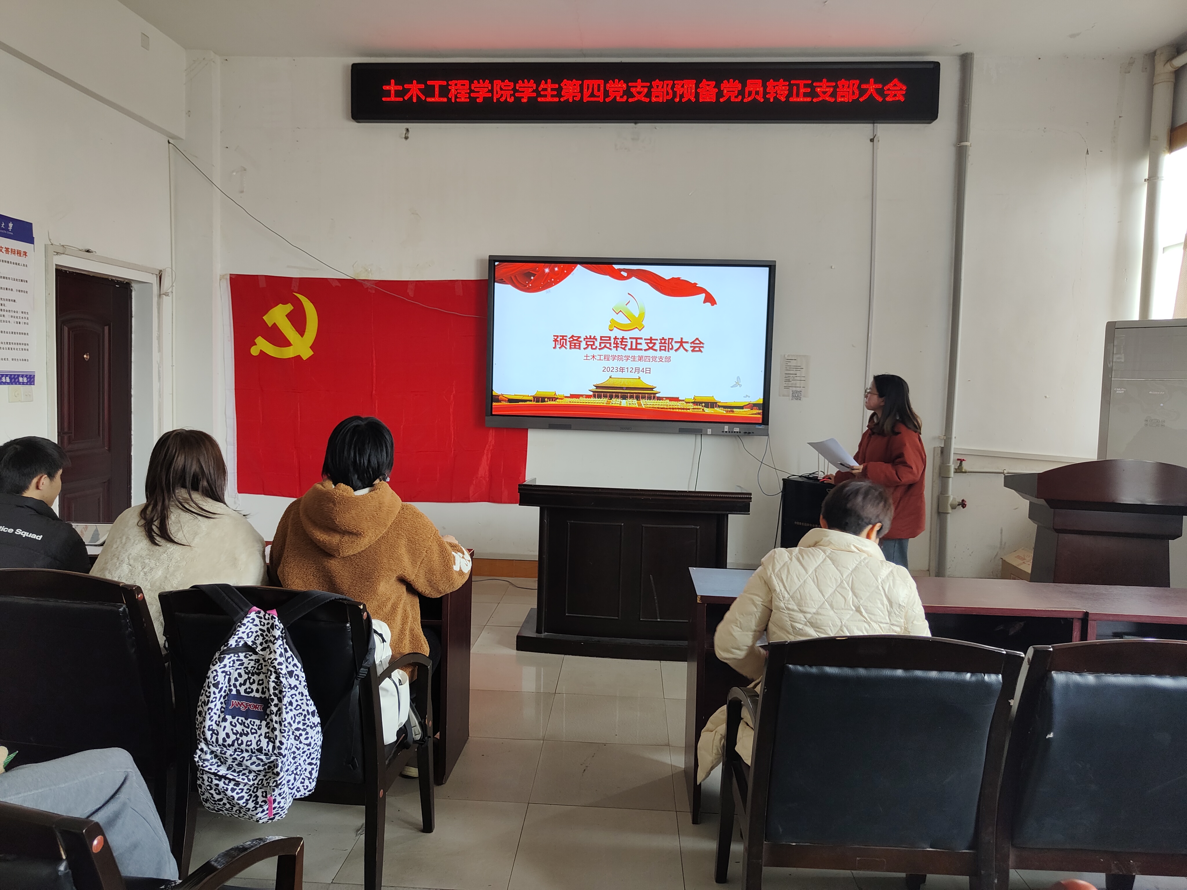 2023年12月4日下午,英国365集团学生第四党支部在土木楼四楼会议室召开预备党员转正支部大会,会议由支部副书记彭晶晶主持,支部全体党员参加。