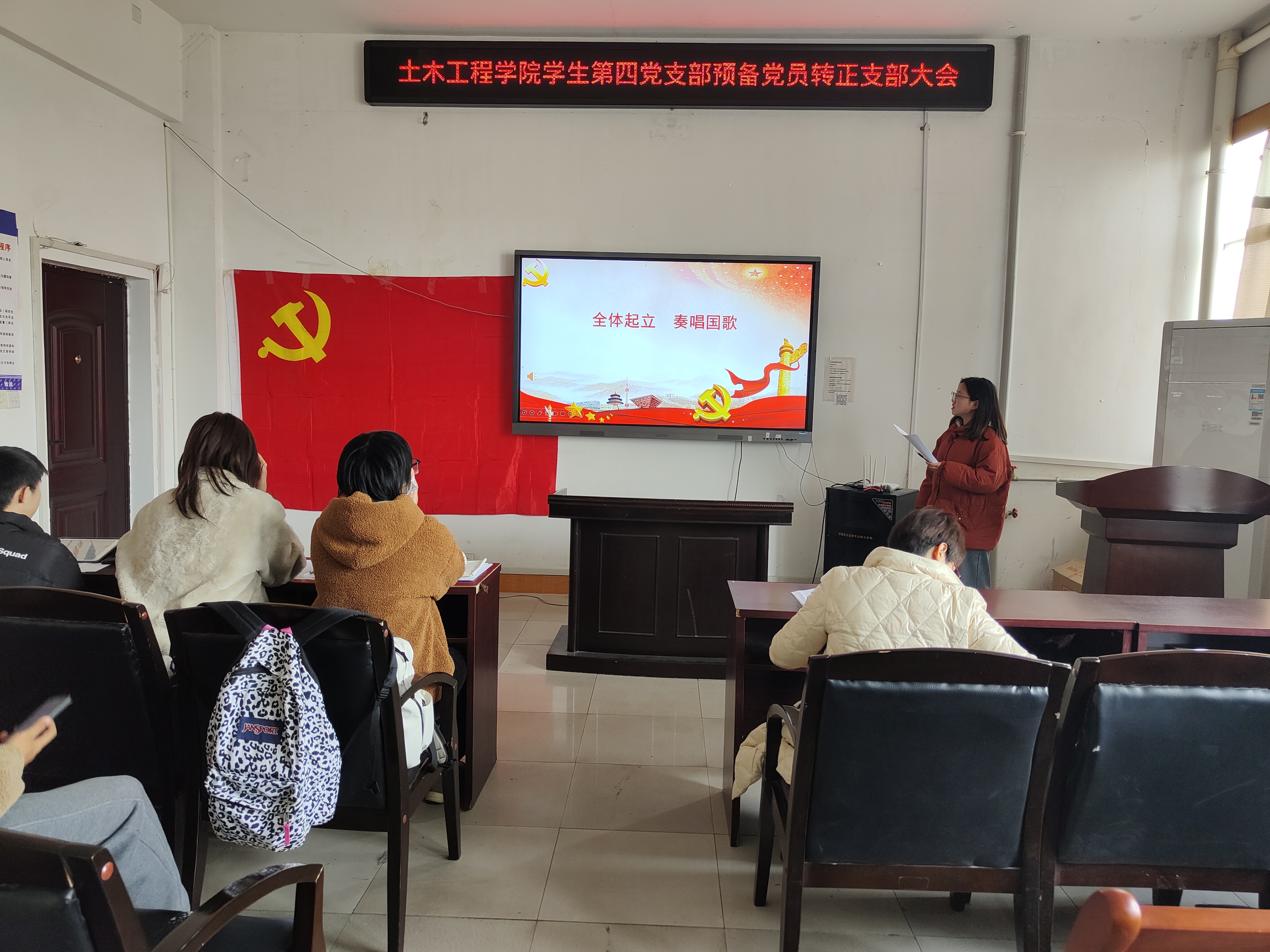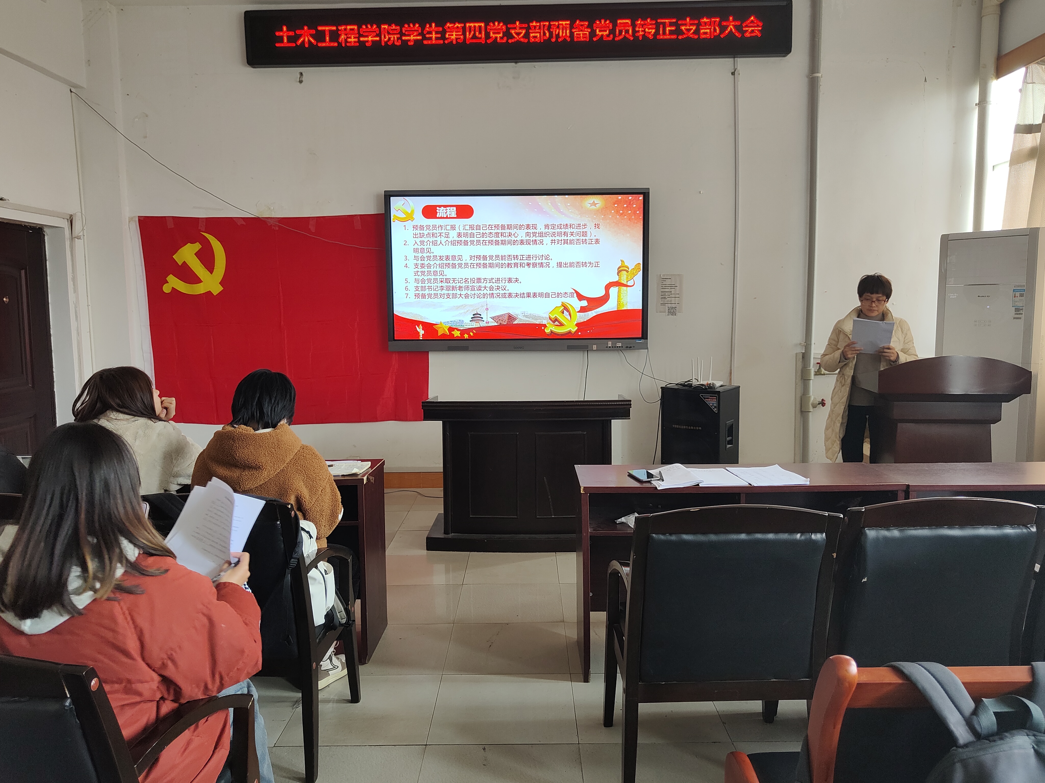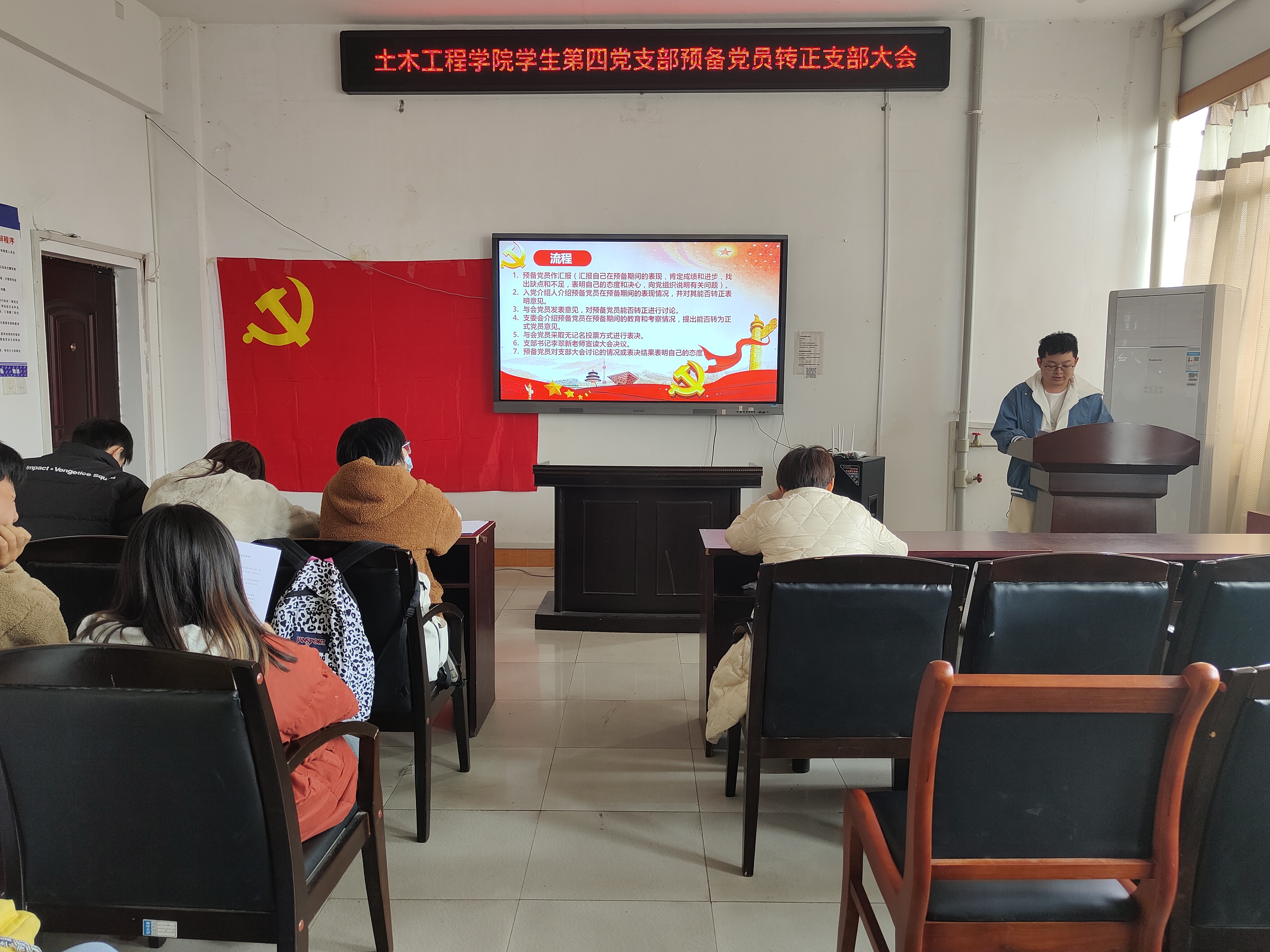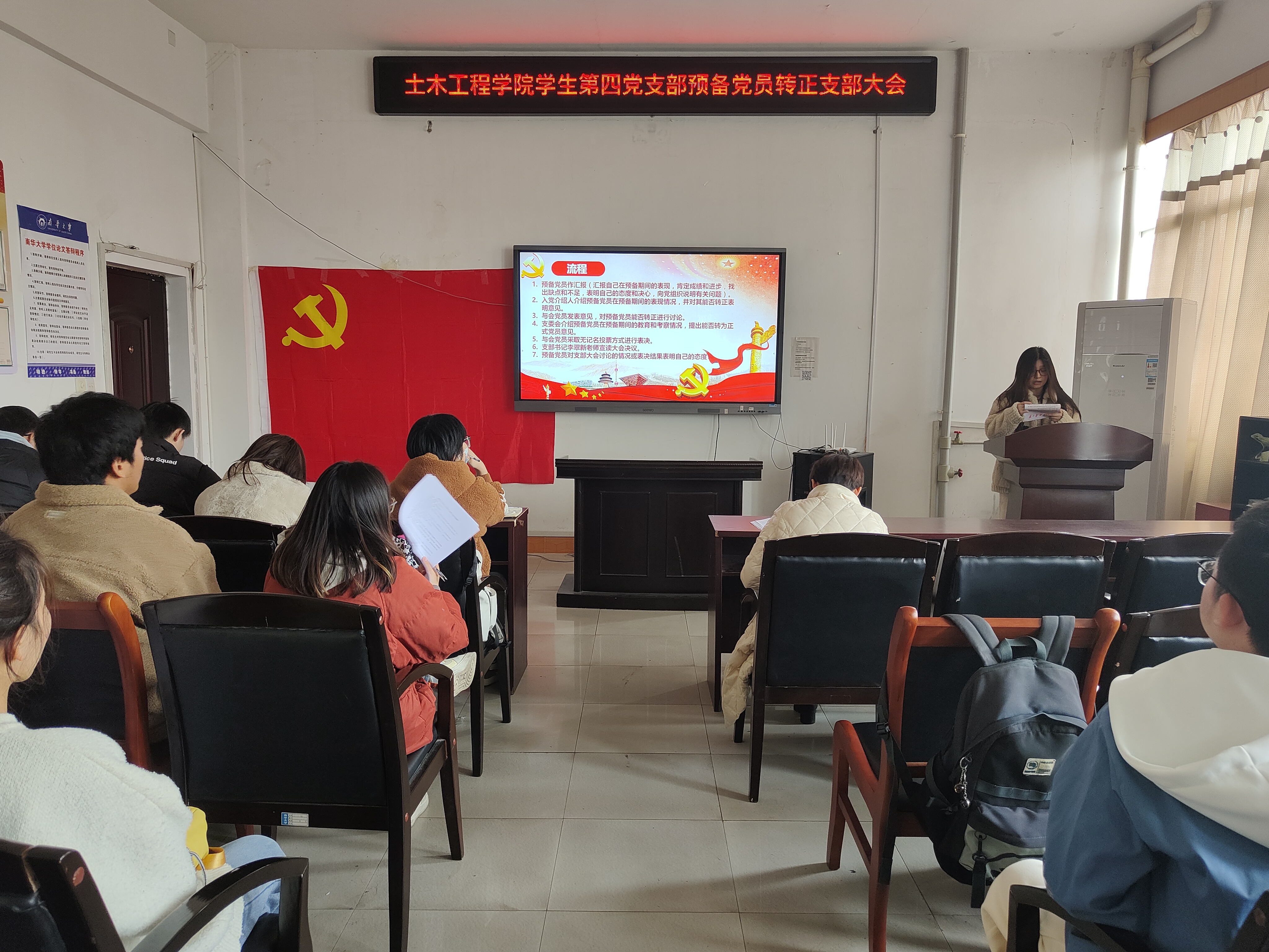 2023年12月4日下午,英国365集团学生第四党支部在土木楼四楼会议室召开预备党员转正支部大会,会议由支部副书记彭晶晶主持,支部全体党员参加。