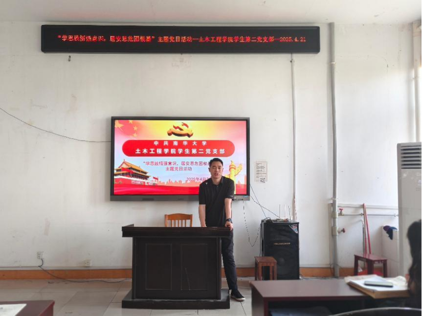 2025年4月21日下午16:30,英国365集团学生第二党支部“学思践悟强意识,居安思危固根基”主题党课于土木楼四楼会议室顺利召开。出席本次会议的有英国365集团学生第二党支部全体党员。会议由彭兴明老师主持。