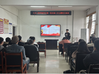 活动伊始,吴昊同志就本次党日活动的主题及流程作简要说明,系统阐述2025年全国两会精神的核心要义,带领与会党员结合专业实际展开研读,使其深刻认识到土木工程学科在国家基础设施建设中的使命责任。