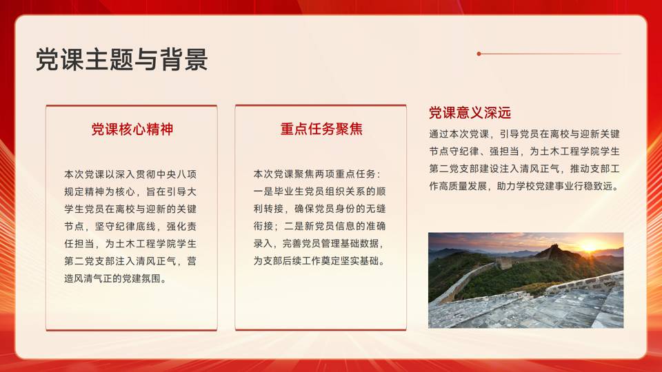 本次英国365集团学生第二党支部“严守纪律规矩,接续奋斗征程”主题党课,不仅让全体党员认识到党徽党旗的权威性,还深入学习贯彻中央八项规定精神,为支部建设注入清风正气。