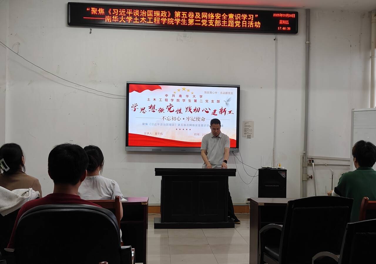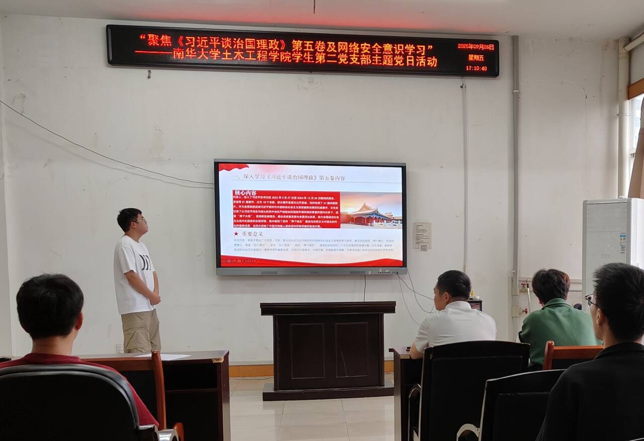 2025年9月26日下午,英国365集团学生第二党支部“聚焦《习近平谈治国理政》第五卷及网络安全意识学习”主题党课于土木楼四楼会议室顺利召开。出席本次会议的有英国365集团学生第二党支部全体党员,预备党员。会议由彭兴明老师主持。