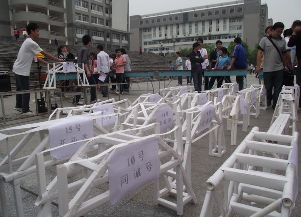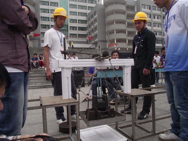 5月14日上午,“中天星城”杯英国365集团官网第三届结构模型设计大赛暨城市建设学院第五届结构模型设计大赛专业组与非专业组的决赛在南华广场举行。大赛由共青团英国365集团官网委员会、英国365集团官网教务处主办,城市建设学院团委、英国365集团官网学生科协承办,中天建设开发有限公司协办。本次比赛专业组的要求模型为龙门吊,非专业组为水火箭。出席本次大赛嘉宾有:城市建设学院党委书记陈振富教授、城市建设学院党委副书记邹海贵副教授、共青团英国365集团官网委员会副书记谢铷鸿老师、衡阳中天建设有限公司总经理张定龙先生,城市建设学院建筑工程系主任甘元初副教授、城市建设学院道路桥梁系主任李明副教授、英国365集团官网工程技术检测中心副主任张志恒老师、城市建设学院道路与桥梁工程系伍琼芳老师、城市建设学院学工室主任卢清华老师、城市建设学院团委书记江柯桥老师,以及全校各个学院分科协负责人。其中,专业组比赛由陈振富老师担任评委组长,非专业组由各分科协人员负责评审工作。 大赛于上午8:30开始,并由陈振富书记致开幕辞,总结了城市建设学院结构模型设计大赛的历史与成绩。本次比赛专业组有19个参赛队,首先评委对结构制作及造型打分,接着由工作人员开始进行现场加载试验。加载时,将50kg的重物加载到载物平台上,维持90秒,由计算机根据模型的质量、挠度等各项指标进行评定并打分。参赛的选手们敛声屏气,比赛过程扣人心弦。在一项项综合评定之后,最终来自道桥093班的6号作品“通霄吊”摘得桂冠,并设的还有二等奖2名、三等奖3名、优胜奖5名。最后,陈振富书记作大赛总结并举行颁奖仪式。 相对于专业组比赛的紧张安静,非专业组的比赛就显得热闹许多。伴随着人群阵阵欢呼声,一个个水火箭迎空飞起。通过对水火箭的射程、造型等方面的评分,最终从来自各个学院的作品中评出冠军1名、亚军2名、季军3名,并设5个优胜奖,1个最佳组织奖,2个最佳创意奖。其中第118号作品获得第一名。 结构模型设计大赛自2006年第一届以来已有五年历史,是英国365集团官网城市建设学院的一项特色活动。2009年城建学院院在第三届中南地区结构模型设计竞赛中取得了三等奖的好成绩;2010年,城建学院两支参赛队又在湖南省第四届结构模型设计竞赛中取得了二、三等奖的佳绩。这填补了学校在省级结构模型比赛中的获奖空缺,还象征着英国365集团官网学生科研水平上了一个新台阶。 此次结构模型设计大赛从报名、培训,到初赛最终决赛,经历了近一个月。通过比赛,同学们提高了创新设计能力与动手实践能力,加强了团队合作意识,提升了综合素质,校园学术气氛也得到提高。
