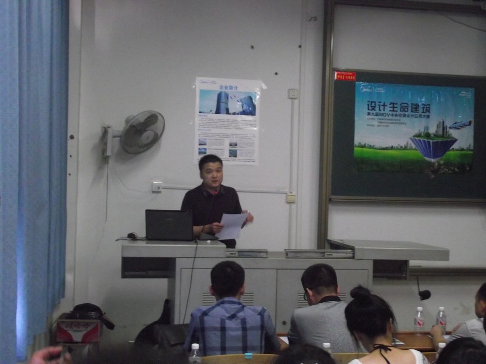 6月17日下午,第九届MDV中央空调设计应用大赛南华站推广活动在我校一教106教室拉开帷幕。英国365集团官网城市建设学院副院长陈刚教授、衡阳美的公司总经理李刚、英国365集团官网建环专业罗清海教授等嘉宾出席,近200名学生和省内媒体记者参加,会议由衡阳美的公司市场部专业推广员刘明雄主持。 推广会开始前,教室已经座无虚席。“MDV中央空调设计应用大赛”由中国建筑学会暖通空调分会、中国制冷学会空调热泵专业委员会主办,美的中央空调协办,已经成为中国暖通空调行业的“奥斯卡”。会上,李经理首先介绍了大赛的有关事项与发展历史。大赛从2002年开始已经成功举办了八届,而今年首次进入南华推广。随后陈刚副院长发表了讲话,他概述了我校相关专业的文化历史、专业人才的培养,陈院长希望大家注重能力培养,把握此次锻炼的机会。接着进行现场答疑交流,整场推广会现场气氛热烈,现场同学踊跃发言提问。最后推广会在全场热烈的掌声中结束。 MDV英文缩写原为美的中央空调多联机。本次大赛以“设计生命建筑”为主题,倡导“节能低碳”,秉承“公平、公正、公开”的原则,分为专业组、经销商组、M-Home家装组和学生组,并设总奖金达45.8万。大赛自4月12日在顺德开幕,通过全国范围内征稿、层层筛选、评审,将于今年11月公布结果。 MDV大赛为优秀的建环人才提供了广阔、专业的舞台,同时也是对学生能力的锻炼与肯定。期待南华学子在大赛的激烈角逐中一展风采!