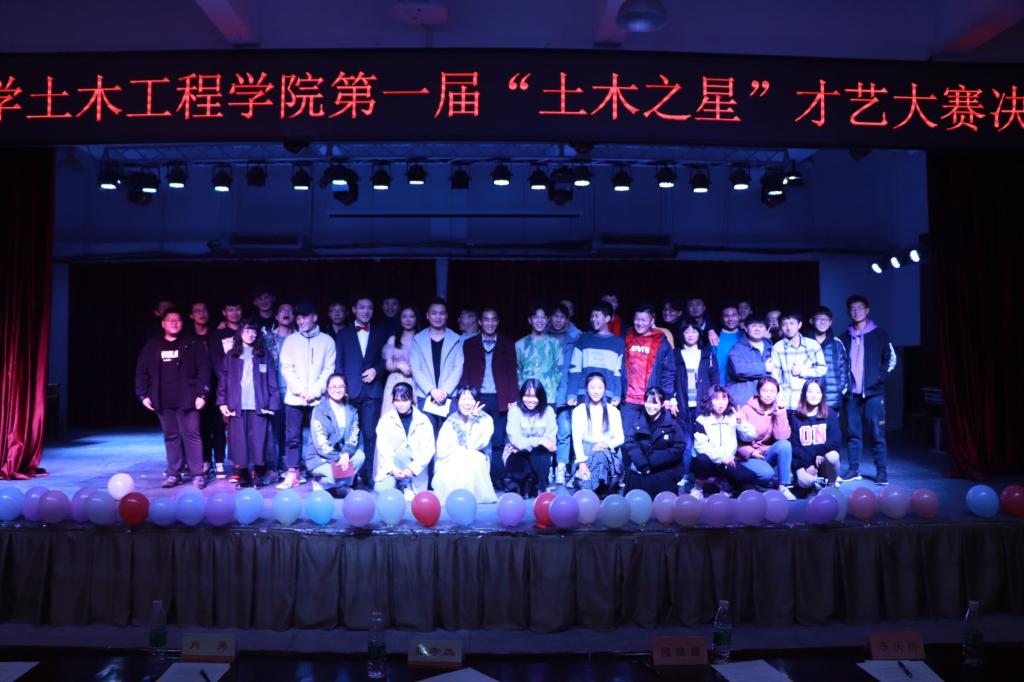 2019年12月12日晚上七点半,英国365集团第一届“土木之星”大赛于新校区食堂四楼举行。英国365集团辅导员肖勇、张孝磊,学生会段晓晨主席,副主席李庆浩、17级音乐协会会长邹龙飞以及团委、学生会各部门的部长们担任大赛的评委,除此之外还有各班派出的大众评审团。