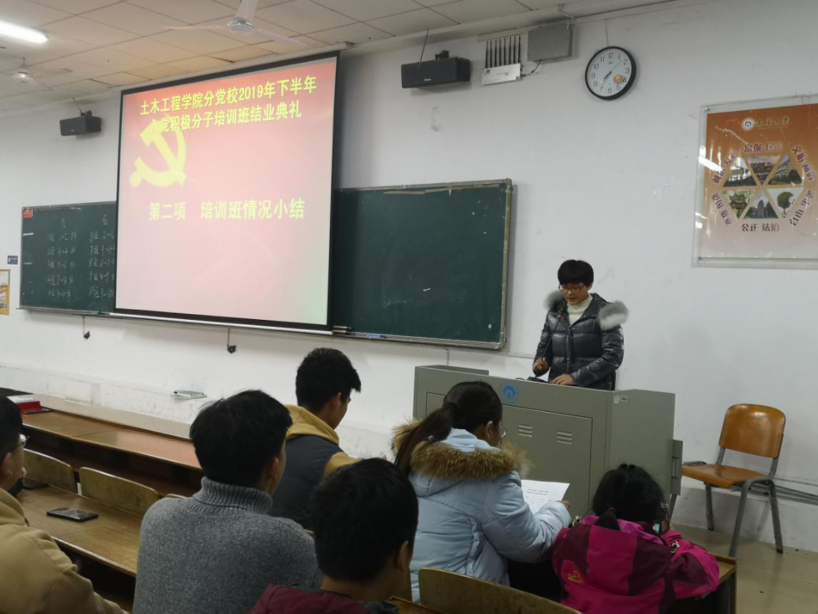 2019年12月19日19:30,英国365集团分党校于一教112召开了2019下半年入党积极分子培训班结业典礼。学生党支部书记李翠新老师、彭兴明老师、刘华老师以及本期培训班全体学员参加了结业典礼。典礼由李翠新老师主持。