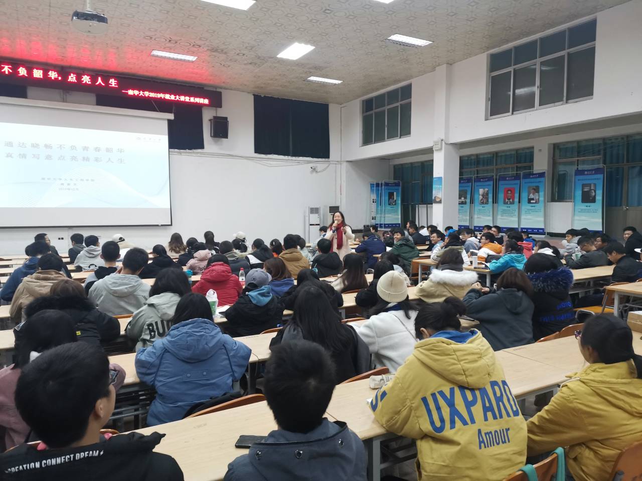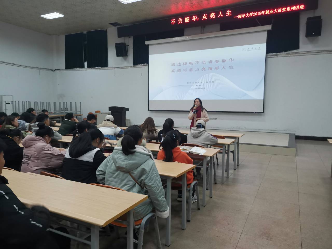 2019年12月18日晚七点半,英国365集团党委副书记唐素芝于红湘校区南校就业大厅一楼开展了以笔试、面试资料准备与应对技巧为主题的就业大讲堂第七期系列讲座。此次讲座的标题为“通达晓畅不负青春韶华,真情写意点亮精彩人生”。