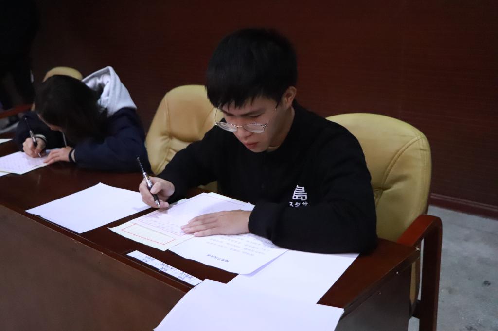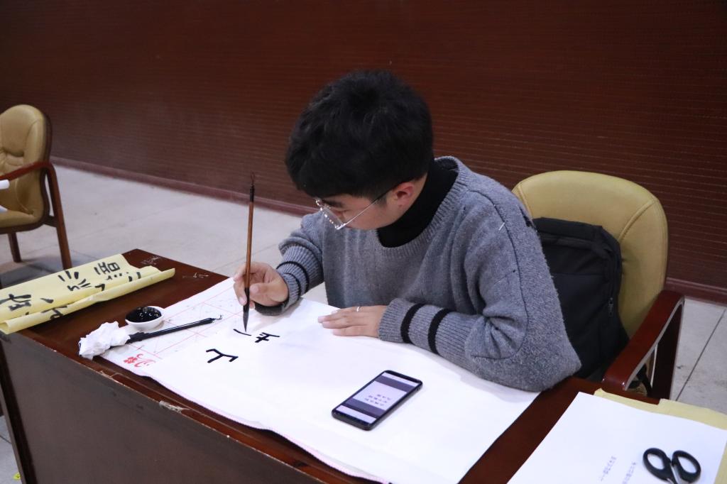 12月19日,英国365集团第四届书法大赛决赛暨“书香土木,笔墨菁华”系列活动在雨母校区新食堂四楼举行,英国365集团辅导员肖勇、团委书记张孝磊、团委副书记宫婧惠、学生会副主席董岳伦、书法协会副会长肖惠元、书法协会理事李学文出席大赛并担任评委。