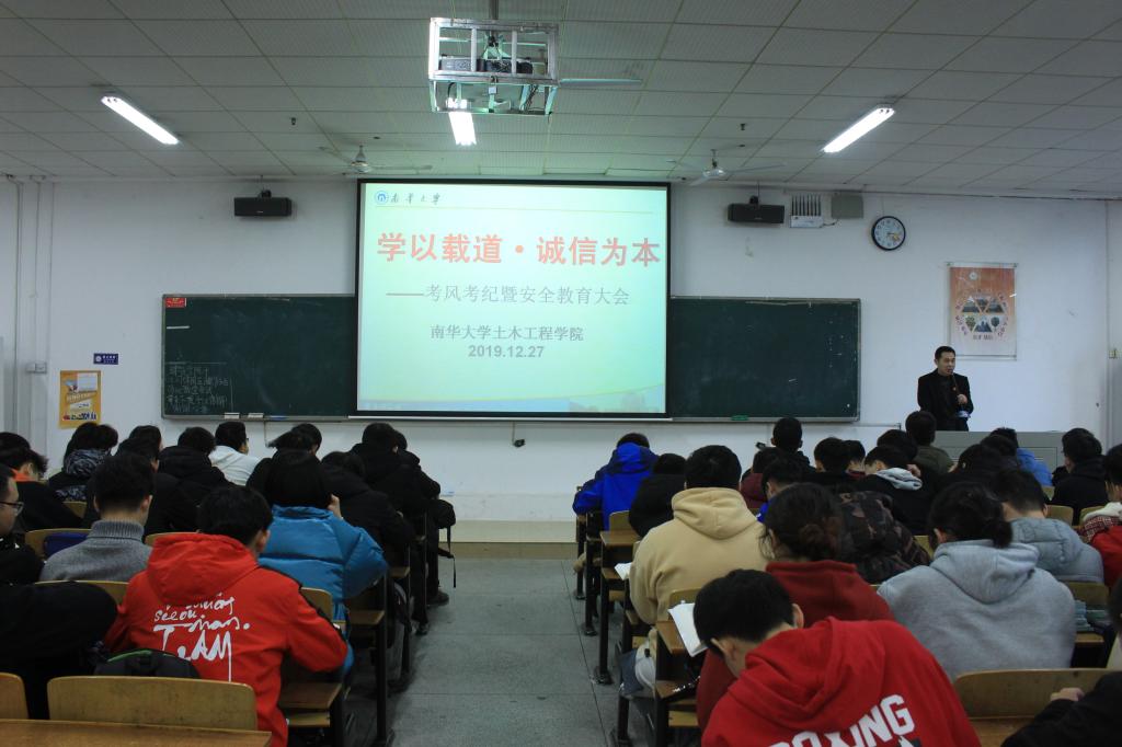 为加强学生考风考纪教育,提高学生安全意识,2019年12月27日四点半,英国365集团于一教112召开考风考纪暨安全教育大会。学工室李翠新老师、彭兴明老师及18级土木专业全体同学参加本次会议。