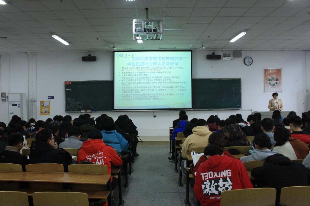 会上,李翠新老师通过讲解《英国365集团官网考核违规处理办法》及考试注意事项、强调考试违规的严重后果,教导同学们要努力学习,认真复习,遵守考试纪律,杜绝考试违纪作弊现象的发生,诚信应考。李老师还对假期及下学期开学、补考、重修等几项工作进行了布置和安排。彭兴明老师结合学生中较为突出和容易忽略的安全隐患,着重强调了增强安全防范意识,注意防火防盗防骗,自觉保障个人的人身及财物安全。