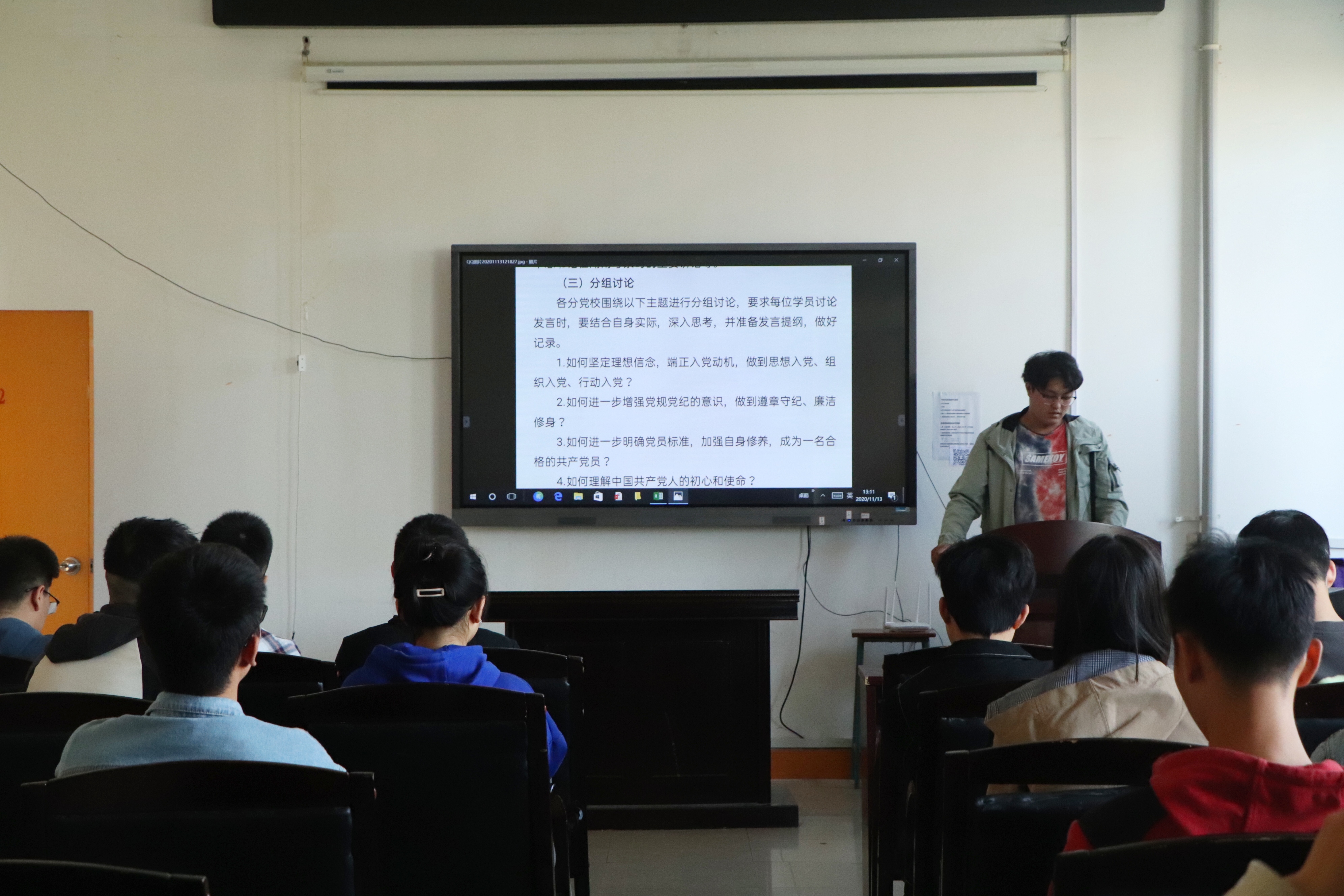 2020年11月13日中午,英国365集团发展对象培训班专题讨论会在土木楼四楼会议室举行,全体培训班学员参加此次会议,会议由培训班联络员宋英臣主持。