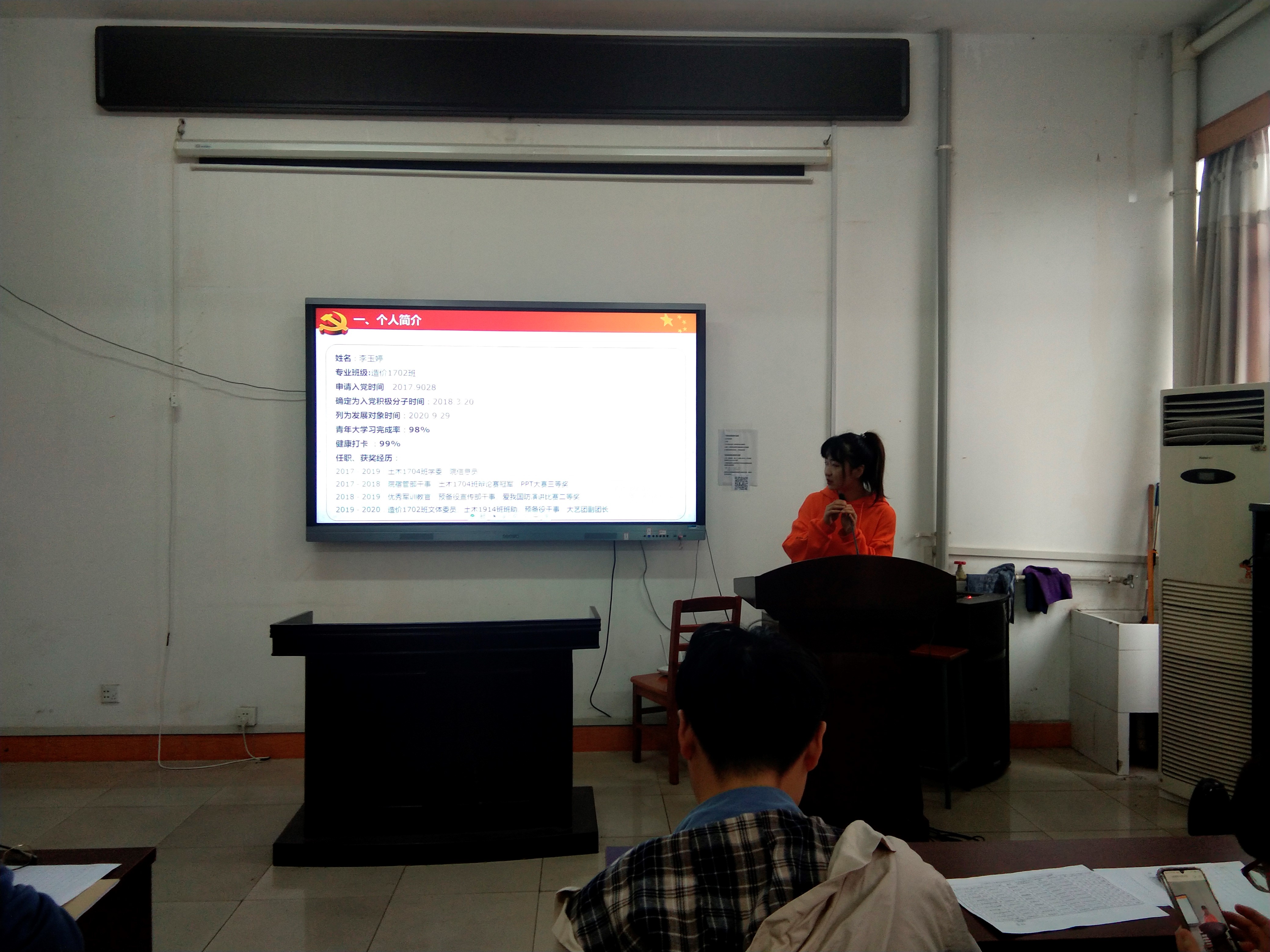此次预审会本着“优中选优,审慎发展”的原则,坚持把政治标准作为首要标准,把综合素质作为重要考察内容。会议分为自我陈述、现场问答、评议推荐、民主投票四个环节。发展对象首先从个人基本情况、入党动机、对党的认识、学习生活、个人不足及未来规划等方面进行自我展示,随后发展对象随机抽取一个题目,现场答辩;与会人员在充分了解情况后,进行评议推荐,并通过无记名投票的方式进行推选,最后综合汇报情况、投票、现实表现等情况,择优确定11名同学为2020年下半年拟发展对象,报上级党组织预审。未入选的同学将继续考察培养,待条件成熟后再行发展。