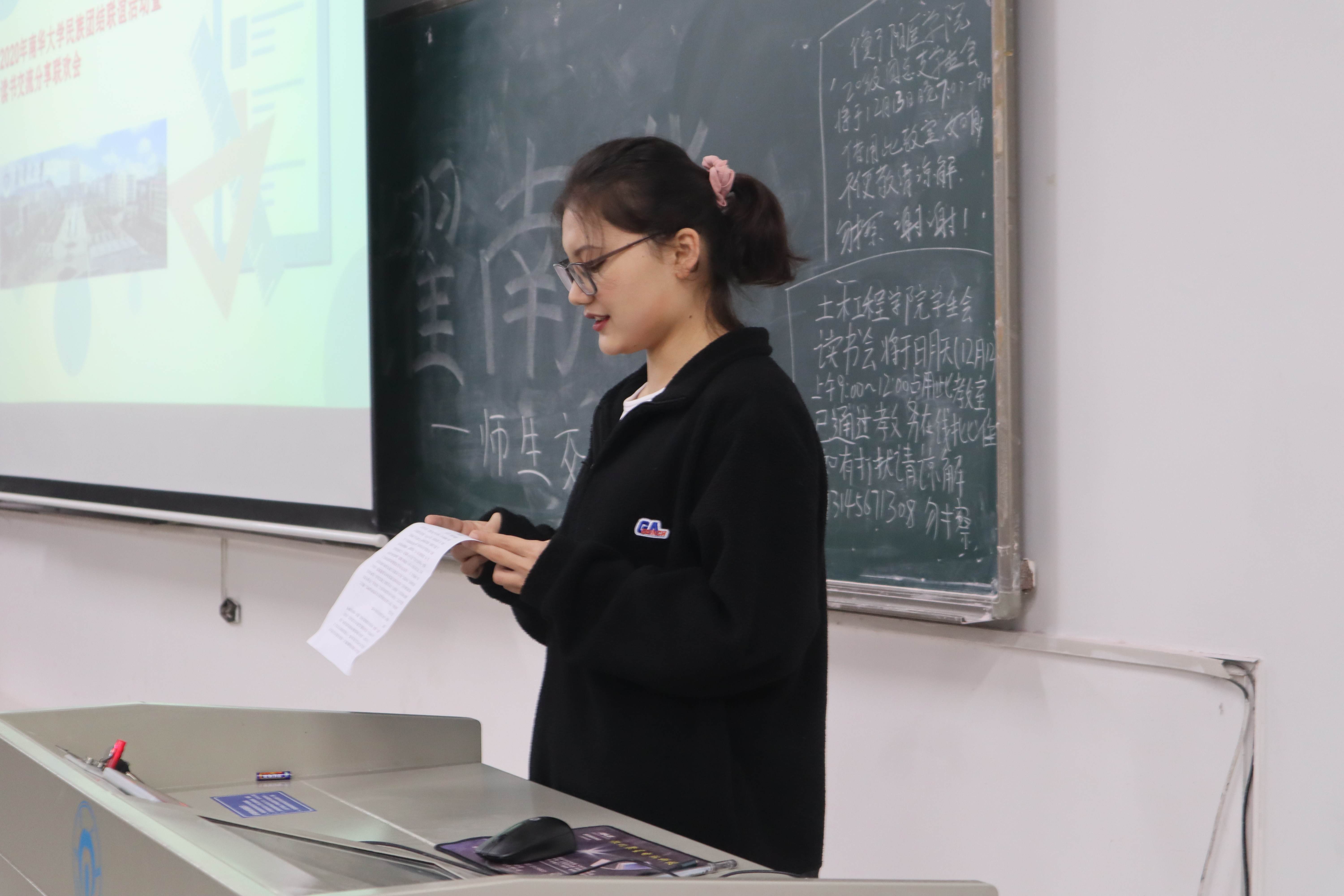 本次交流会在观看全国向上向善好青年王玉锋视频和预备役学生鞠海军视频中拉开了序幕。活动伊始,由主持人介绍出席本次活动的嘉宾。随后,由易班学生代表杜婧玮、学生党员代表赛尔江·阿曼太和优秀学生代表迪丽努尔·买合麦提艾力三位同学发言,他们分享了自己在南华的学习生活感受,并表达自己对学弟学妹们的期望。紧接着由新生代表王婷婷和王大伟发言,向大家讲述了自己对中国军人深厚的感情和参与学校宿管工作的感受,倡议大家一起共建美丽校园。
