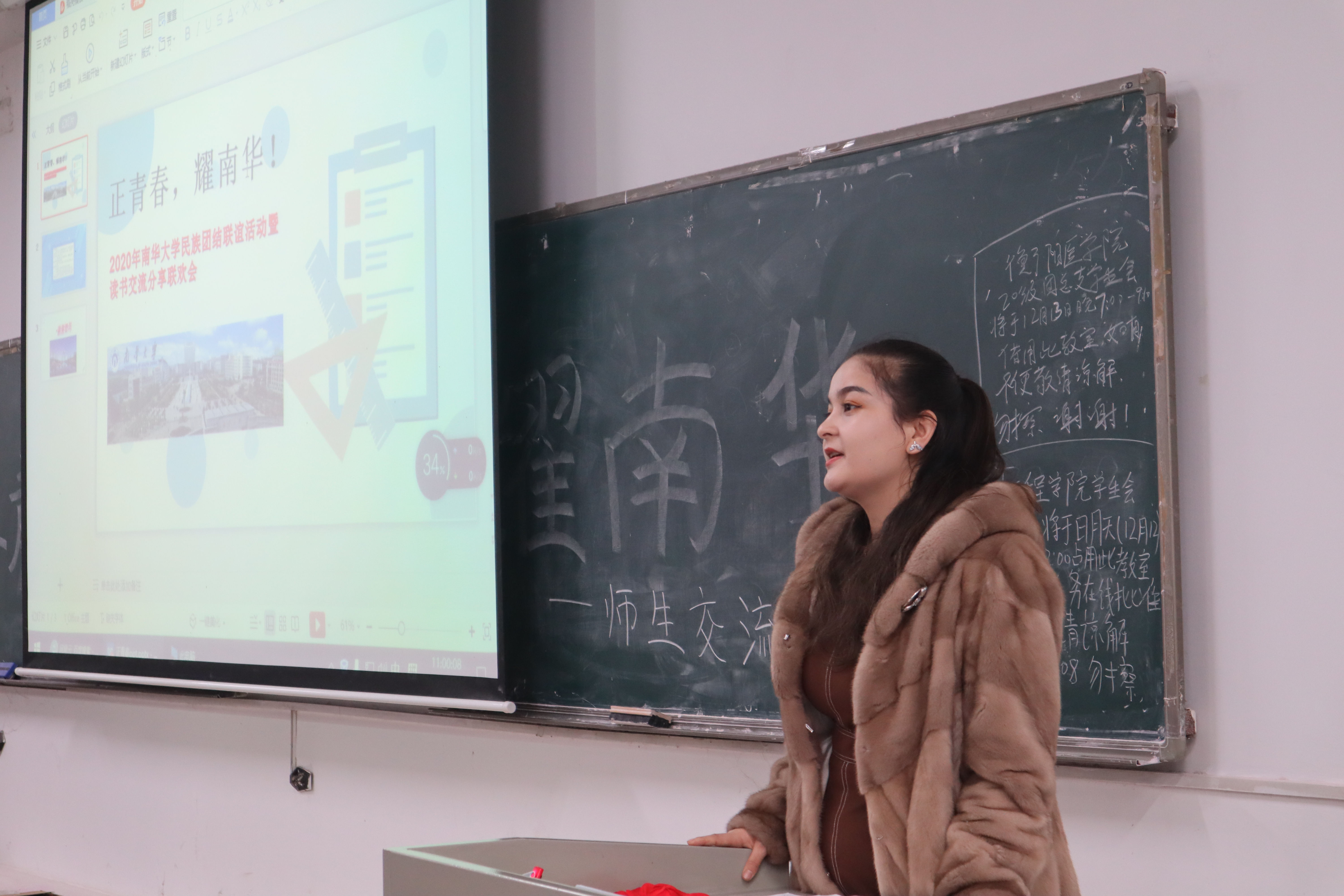 为提高同学们的综合素养、促进大家爱读书,读好书,增进交流与了解,2020年12月13日上午十点,英国365集团读书协会于一教112召开 “正青春·耀南华”——民族团结联谊活动暨读书交流分享会活动。本次交流会的与会成员有校学工部王荣老师与祖丽皮亚·麦麦提依明老师、勤工助学基地总经理彭丹、勤工助学中心主任董咏姿、图书馆读书协会李卓冉、校新疆舞协会图迪妮萨、英国365集团团委组织部两位副部长田子鸣和包清源、英国365集团读书协会会长王柳青和副会长欧阳小丽,以及船山学院及各学院的同学代表共同参与了本次活动。本次活动由阿依曼和台外库力两位同学主持。