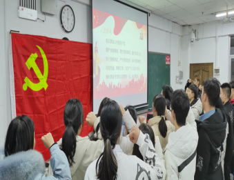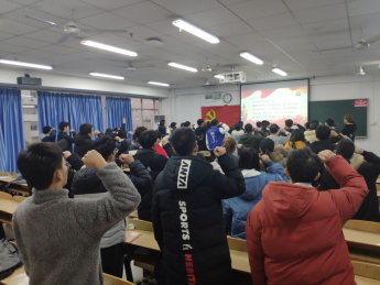 随后,袁彬同志带领全体党员重温入党誓词。胡俊彤同志发表会议感想,1月8日是抗美援朝第三次战役结束的一天,希望我们牢记历史,勇于担当,有所作为。最后,贺老师作会议总结,贺老师首先表达了对本次转正党员与新吸收的预备党员的鼓励与认可,接着对全体党员提出要求,作为党员要时刻树立先锋模范作用,要有责任感,在日常生活中主动担当,并树立疫情防控常态化意识,带头做好疫情防控工作。至此,会议圆满结束。