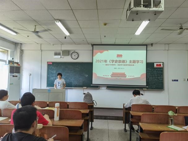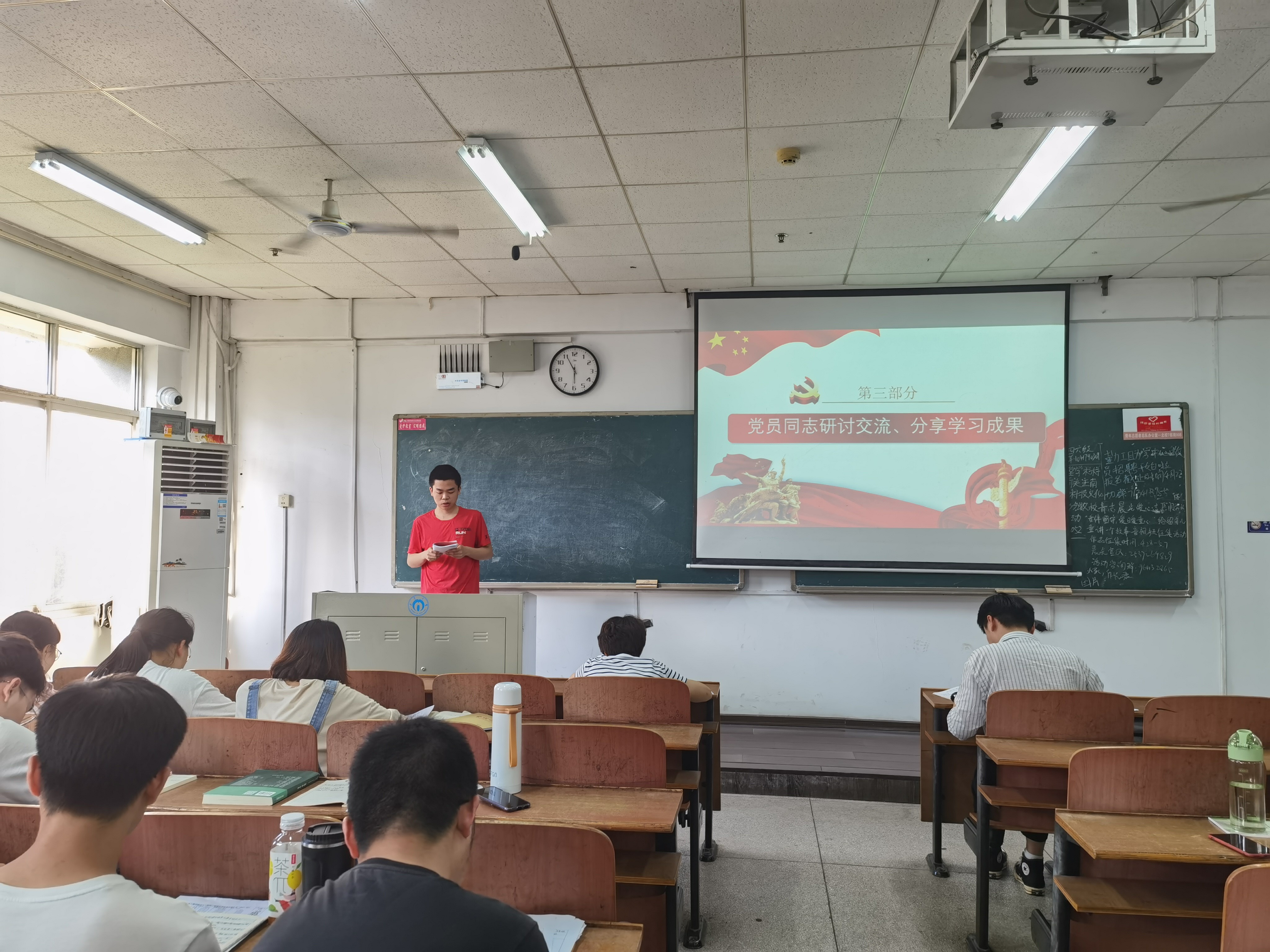 会议开始,由支部书记李翠新老师带领全体学生党员深刻理解学史崇德的内容,认真把握其学习要求,随后进行悦读党史读书分享,由三名党员同志代表分别以主题领学、诗朗诵、观看红色教育纪录片等形式分享自己的学习成果,其他与会党员围绕“学史崇德”专题学习展开研讨交流,大家纷纷表示,要明大德、守公德、严私德,学习红色精神,赓续精神血脉,把初心融入血液中,高标准、严要求,在提升德行修养中继续前行。会上,支部书记李翠新老师就党员积分卡考核项目的评定进行了有关修改,大家积极发言为党员积分制度的完善提出自己的见解和建议。最后李老师希望全体党员增强思想和行动自觉,在立德、修德、守德中行稳致远,始终牢记全心全意为人民服务的宗旨,主动关心帮助身边的同学,当好信息员,切实发挥党员的先锋模范带头作用,做一名合格党员。