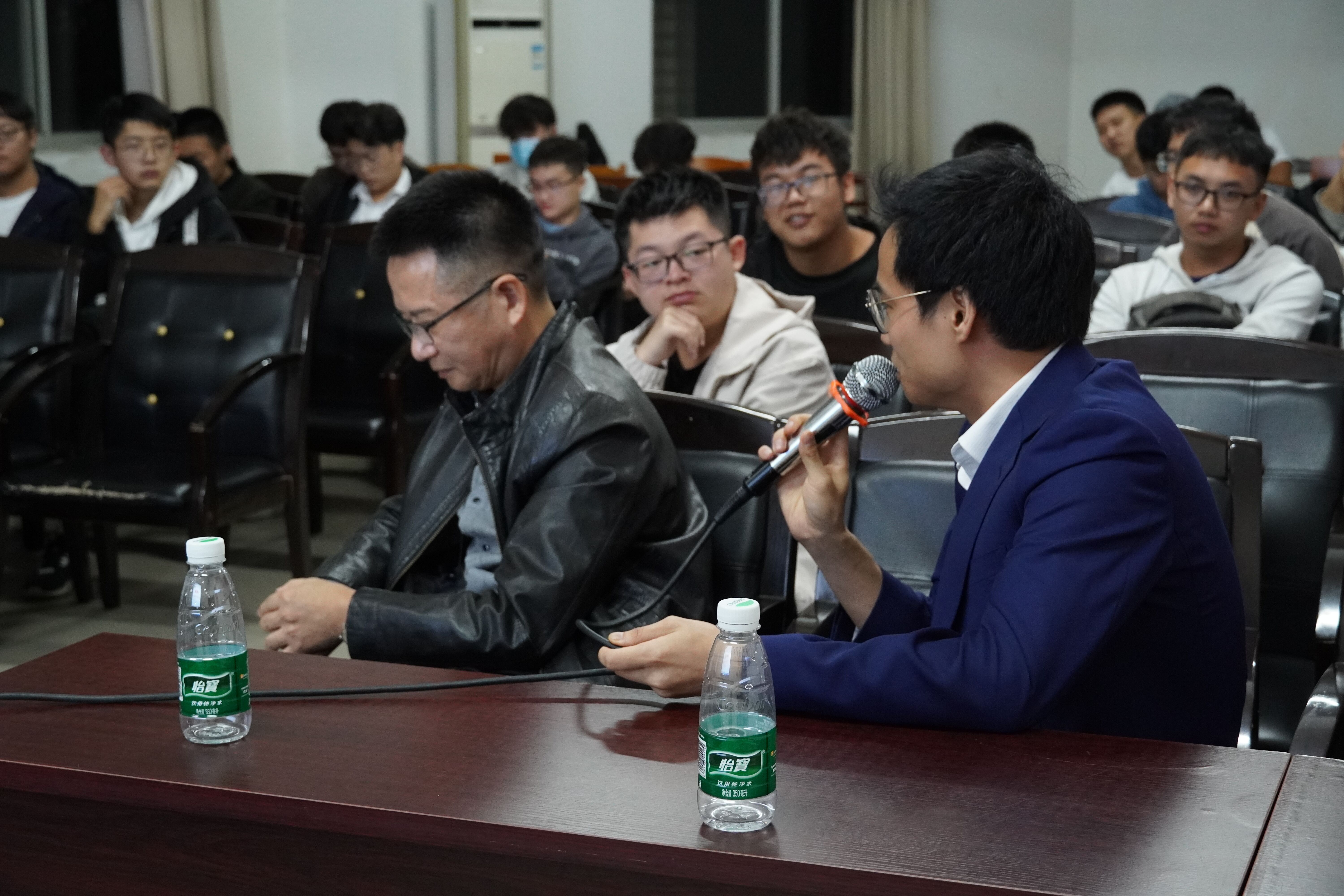 会议伊始,李翠新老师说明本次会议初衷,并向同学们介绍这两位优秀校友。随后,先由李大庆学长与同学们交流。他结合自己的创业经历,向在座的同学们总结出“培养学习能力”“懂得吃苦”“吃亏是福”这三条经验,并希望同学们牢记在心。在李学长与同学们的热情交流后,16届岩土专业毕业生唐希学长继续和同学们分享经验。唐希学长以自己幽默风趣的口吻向同学们讲述了自己的大学生活和从业经历,在对母校英国365集团官网表达感谢和怀念的同时,他也对岩土专业的同学们致以鼓励,希望大家争做“复合型人才”。接下来,同学们纷纷向李大庆和唐希这两位优秀校友提问,李学长和唐学长耐心地为在场的学弟学妹们答疑解惑。会议最后,李翠新老师对返校交流的两位校友表达感谢。至此,本次优秀校友返校座谈交流会圆满结束。