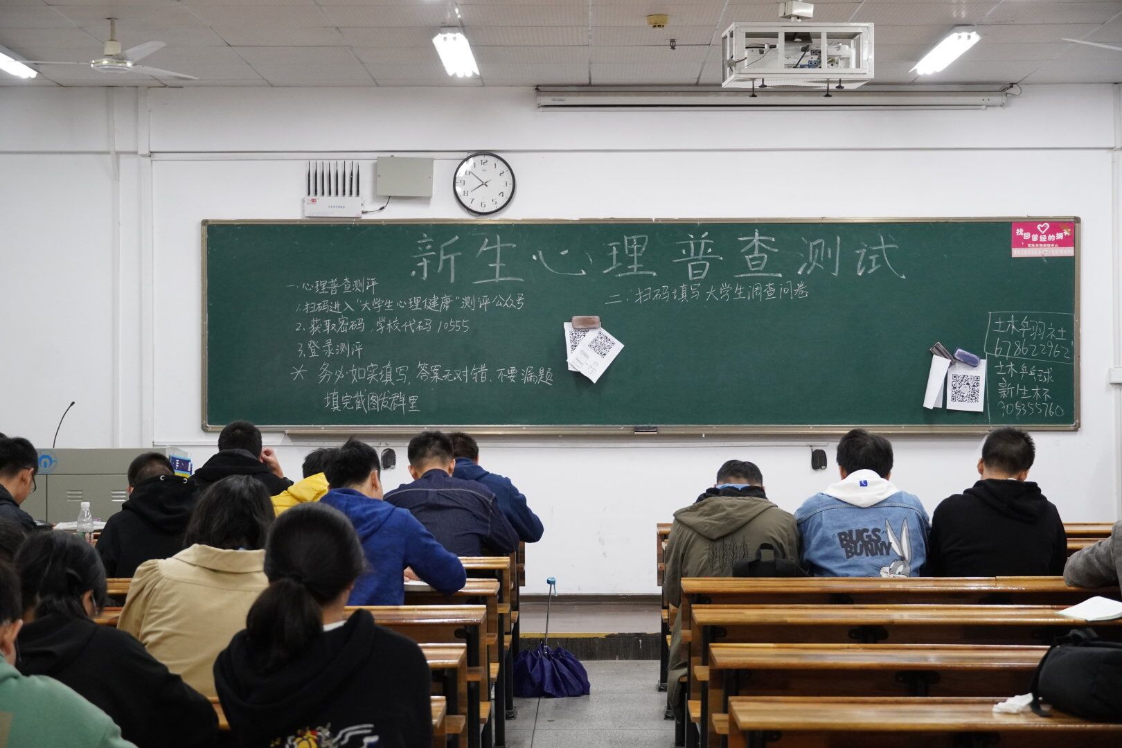 为了及时掌握学生心理状况,保障学生健康成长,维护校园平安稳定,英国365集团于10月20日晚19:30在南华一教部分教室举行2021级新生心理普查活动。院辅导员刘华老师、团委书记张孝磊老师,21级各班班主任、班助及全体新生共同参与了本次活动。