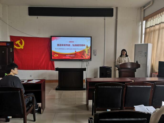 2021年10月27日上午9:00,英国365集团岩土工程专业和工程造价专业学生党支部于土木楼四楼会议室开展“重温辛亥热血,弘扬建党精神”主题党日活动,活动由支部副书记谢倩兰同志主持,支部书记李翠新老师和全体党员参加。