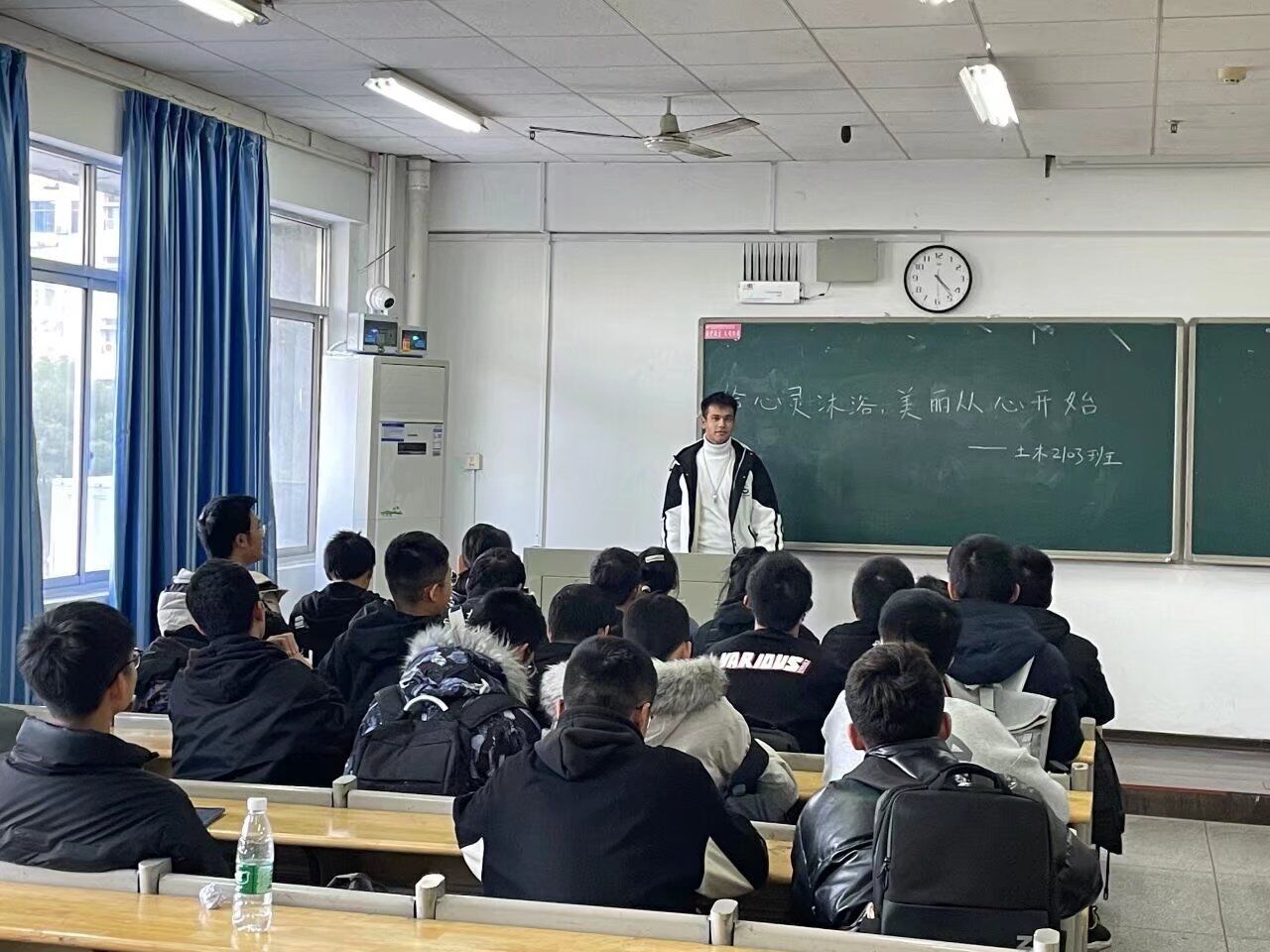 各班班会主持人从日常生活入手,引入心理健康并宣传相关心理知识。以土木2102班及土木2103班为2021级代表,他们从幽默风趣的生活故事出发,引得同学们兴趣盎然。接下来他们逐步加深会议内容,强调心理健康的重要性并针对一些心理问题给出具体解决措施。各班同学反响热烈,班会的开展赢得了同学们的一致好评。