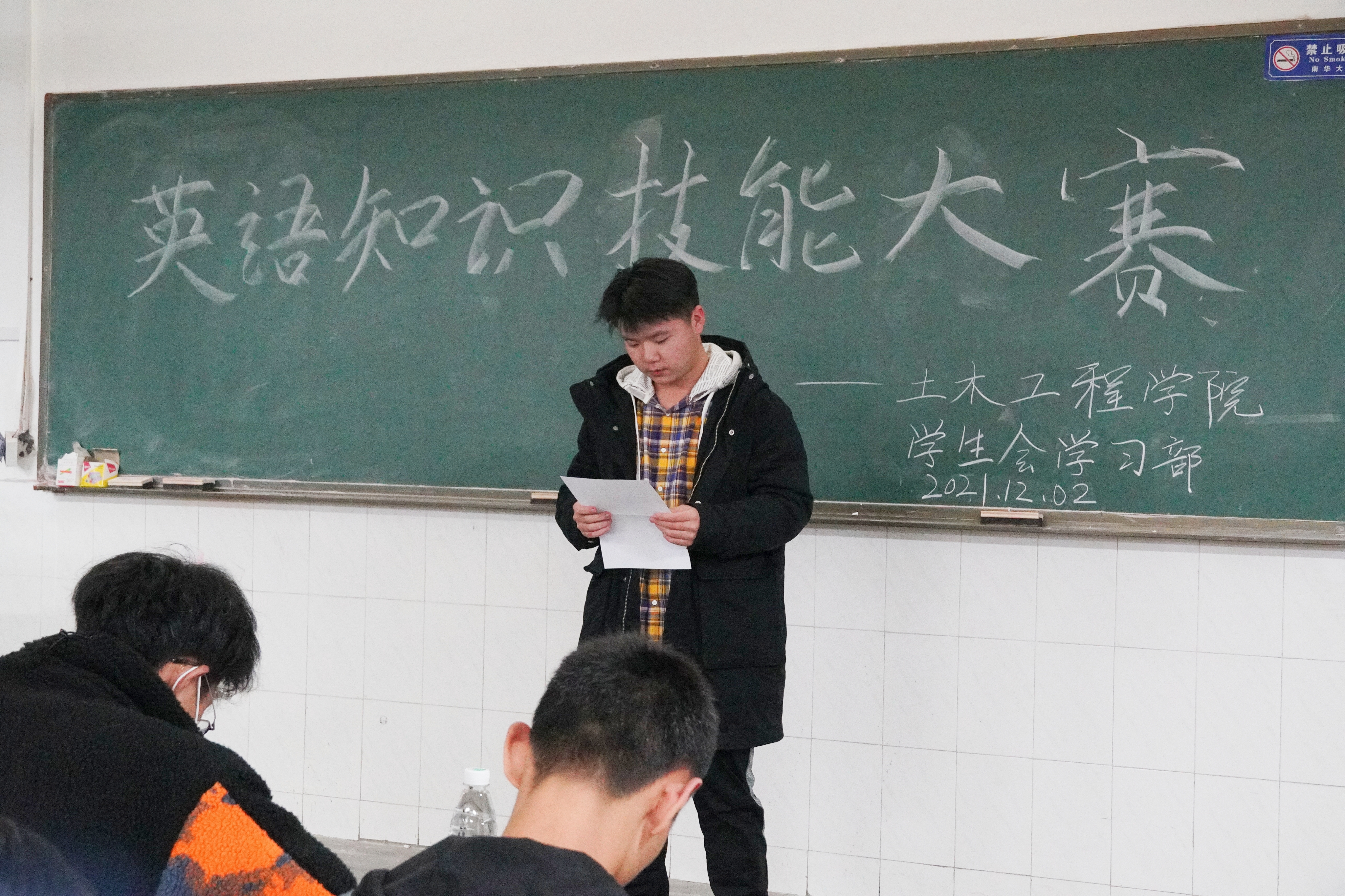 2021年12月2日晚7点,英国365集团于核学楼四楼举办英语知识技能大赛。三个教室分别由唐李伟、沃屹坤和龚俊主持。本次活动邀请院团委、学生会各部门代表作为评委,19、20、21级部分同学参与了本次活动。