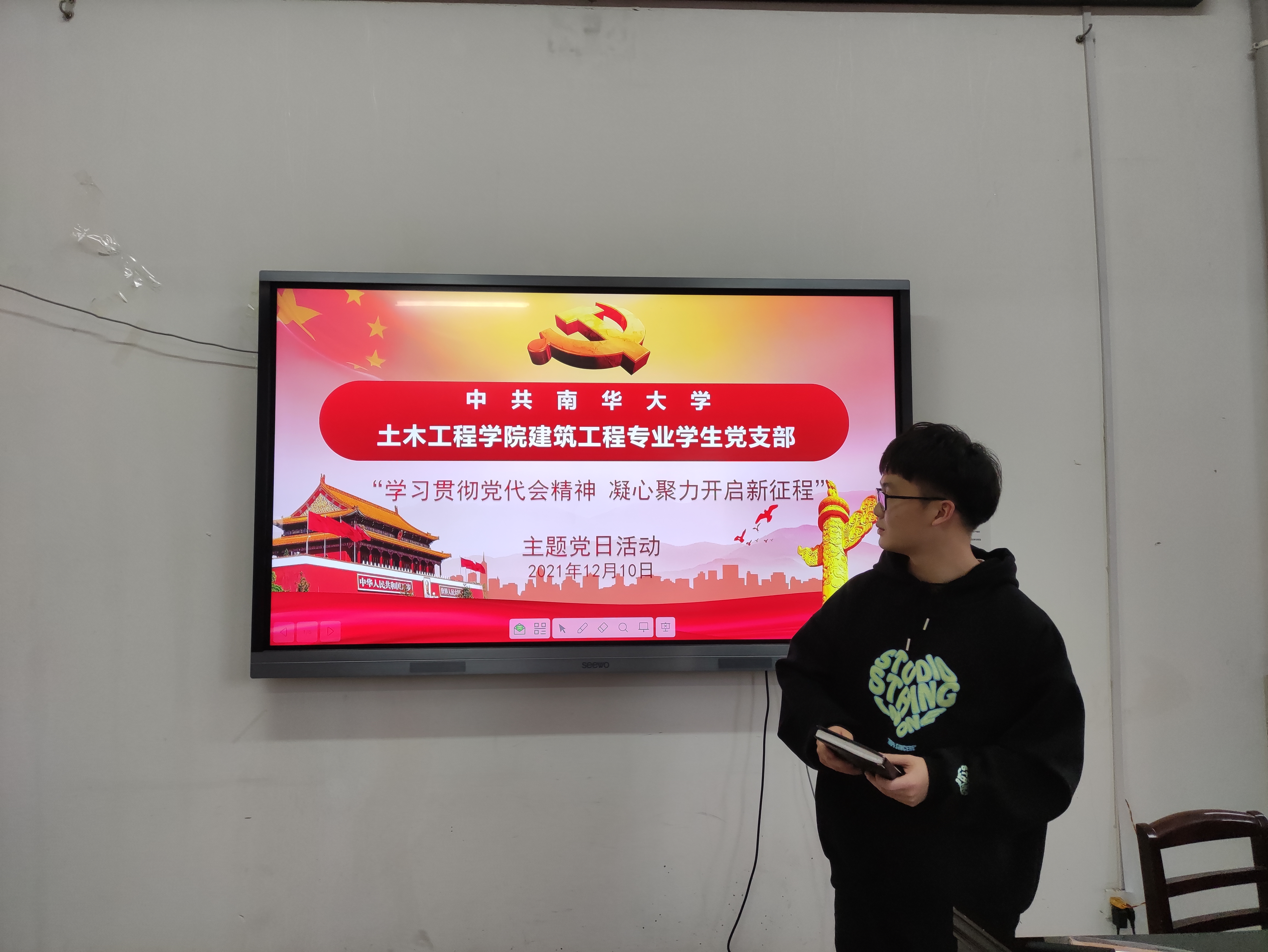 为深入学习湖南省第十二次党代会精神,2021年12月10日16:30,英国365集团建筑工程专业学生党支部以“学习贯彻党代会精神,凝心聚力开启新征程”为主题,开展主题党日活动,活动由支部书记彭兴明老师主持,全体学生党员参加。