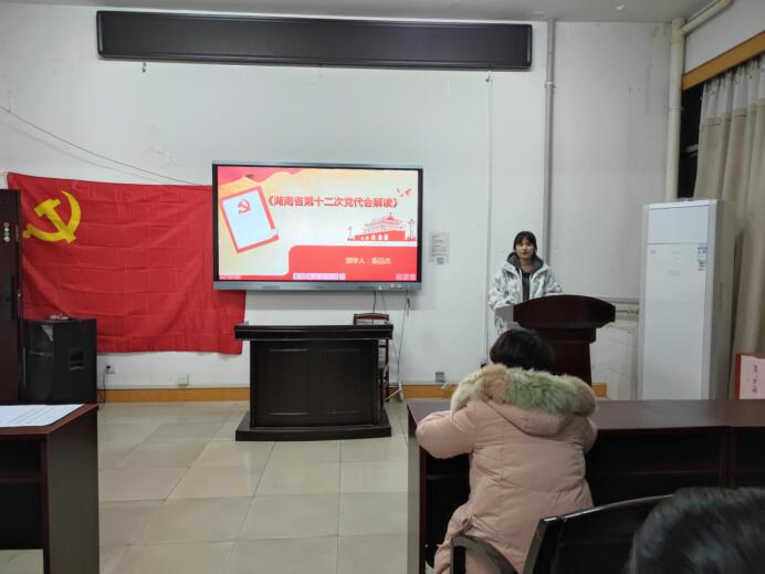 首先,全体党员观看视频,学习湖南省第十二次党代会报告中的精彩回顾、热词点击以及湖南省的五年成就。随后,由姜远杰同志进行领学,系统解读了省第十二次党代会精神。接着,欧洋洋等党员同志上台分享了自己的学习心得,表示将立足于本职身份,扎实做好每一件事,努力学习,积极实践,接过历史的接力棒,走好新的长征路,奋进新征程。