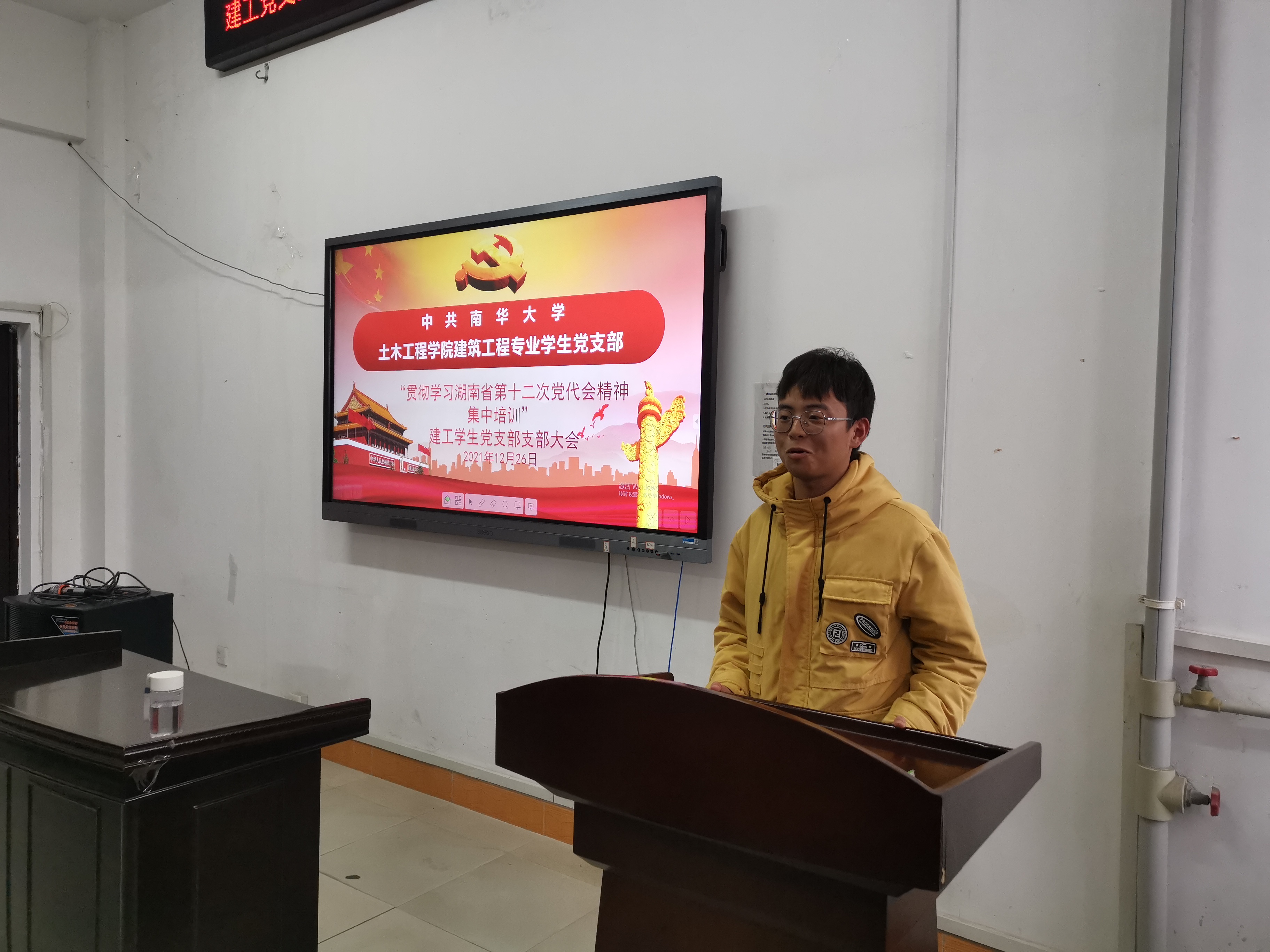 为深入学习湖南省第十二次党代会精神,2021年12月26日16:00,英国365集团建筑工程专业学生党支部开展贯彻学习湖南省第十二次党代会精神集中培训,活动由支部书记彭兴明老师主持,全体学生党员参加(除18级考研党员)。