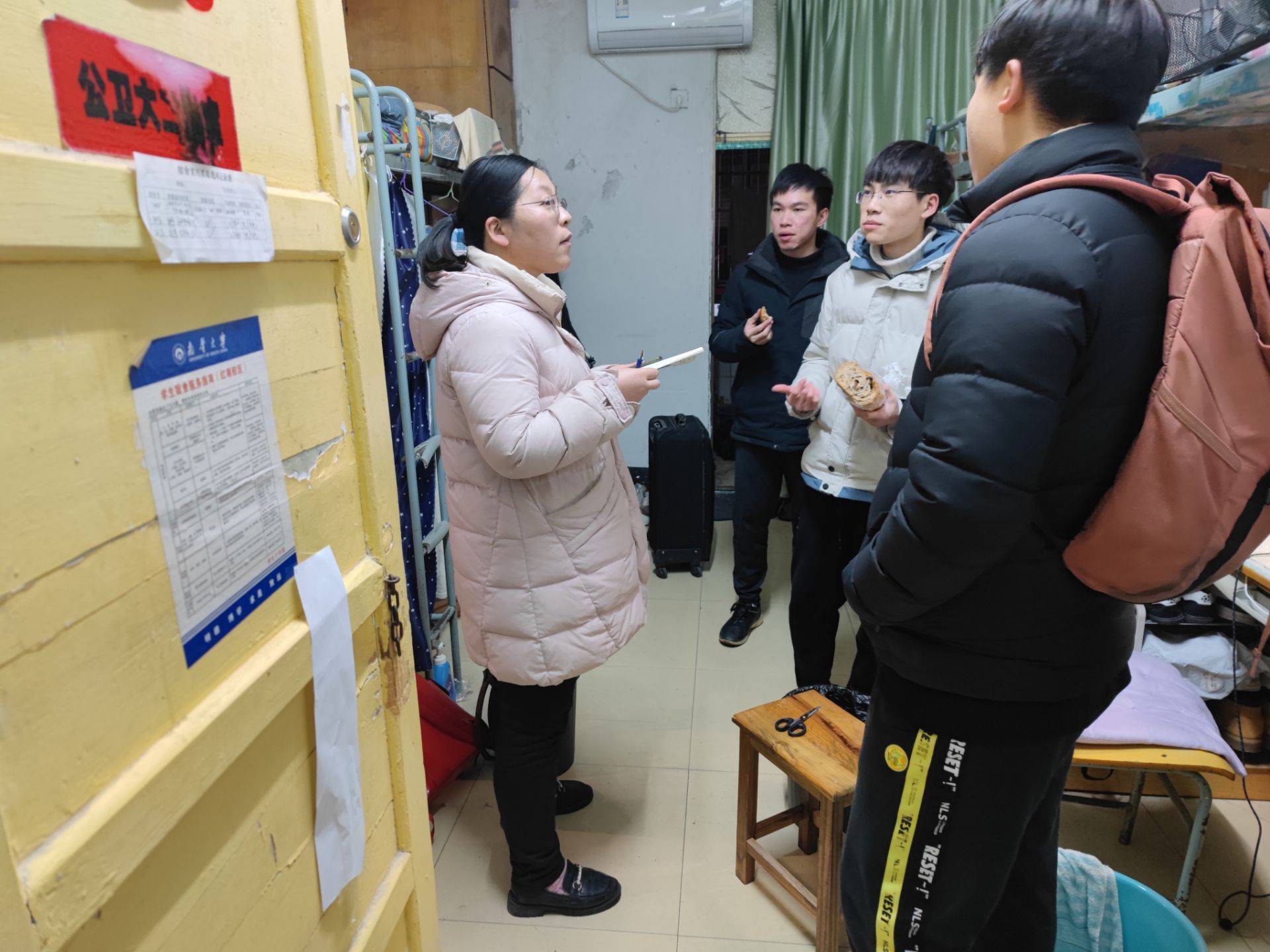 为确保春季开学工作有序进行,保障学生宿舍的安全稳定,2022年2月21日晚,英国365集团党委副书记唐素芝老师、学工室各辅导员老师及院团委书记吴旦老师带领部分学生干部开展全院宿舍安全大检查。
