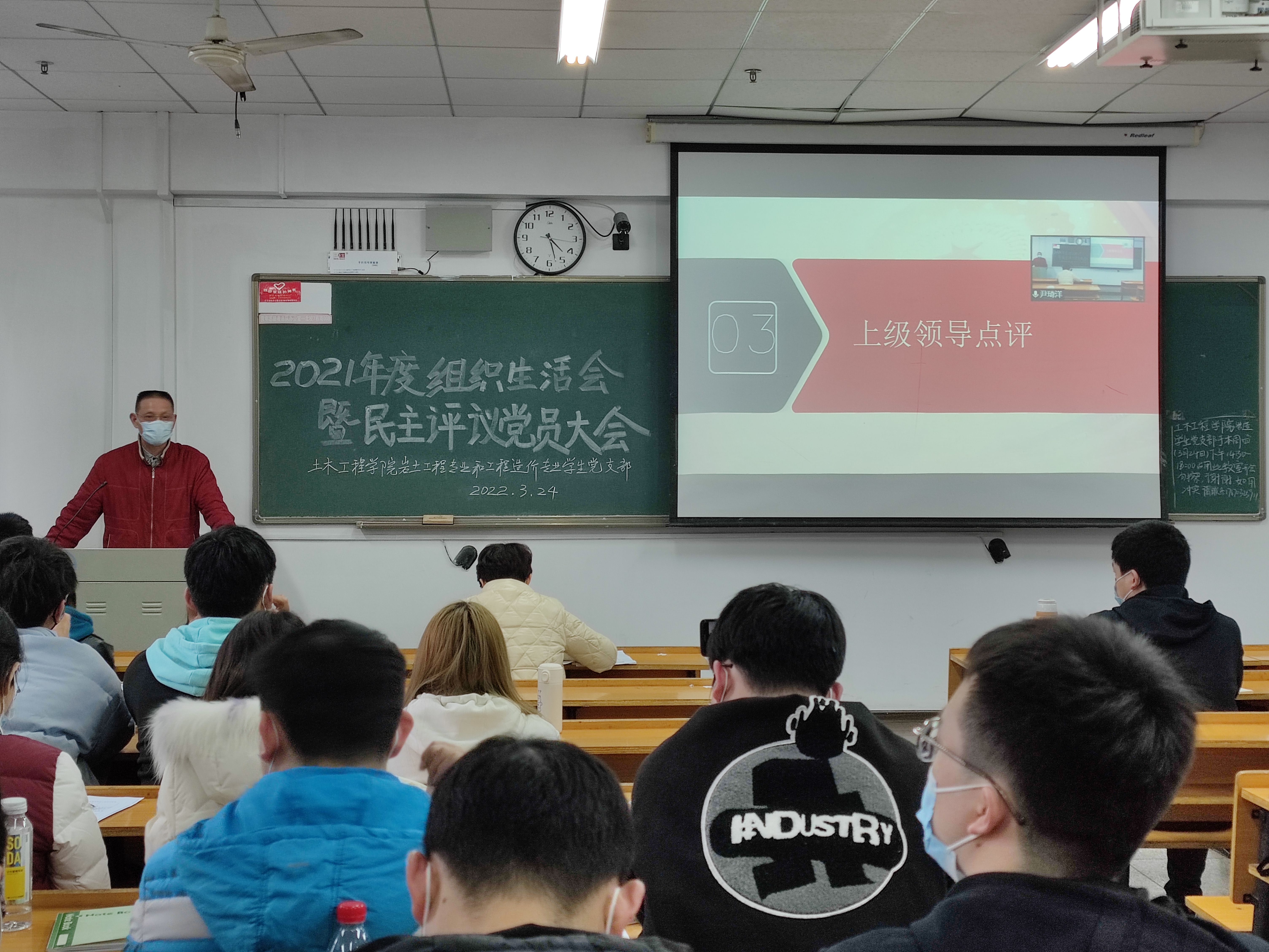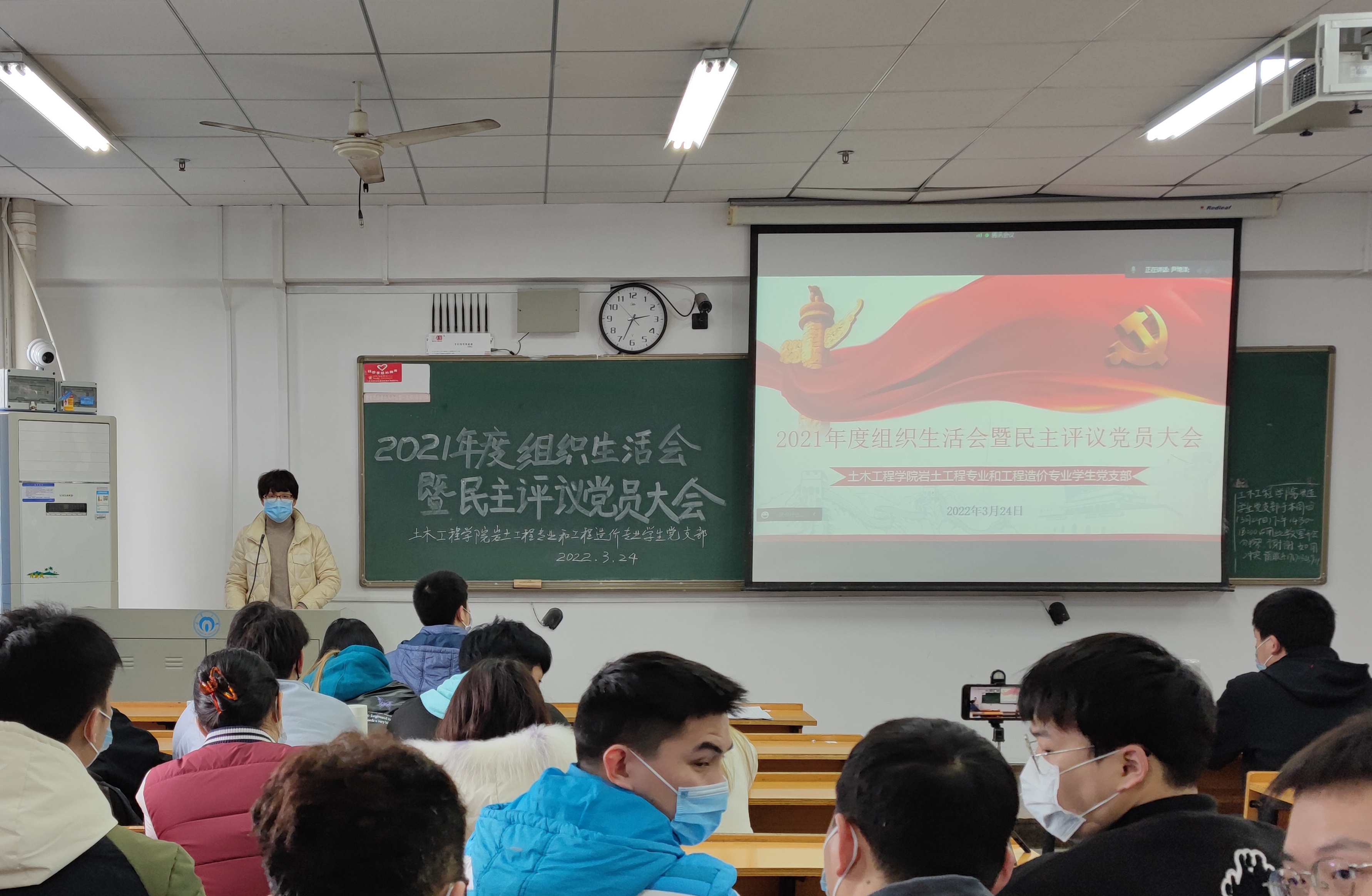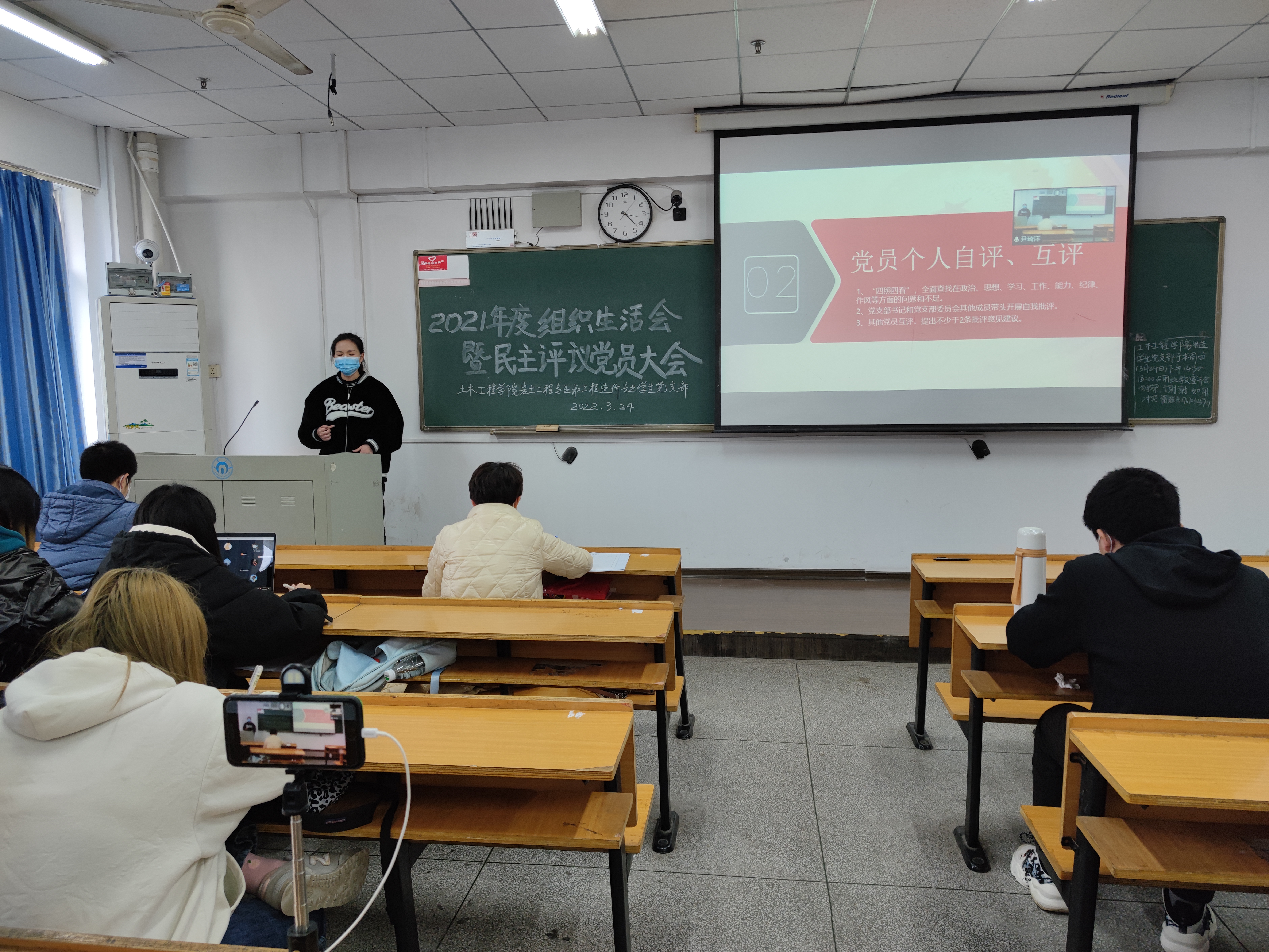 2022年3月24日14:30,英国365集团岩土工程专业和工程造价专业学生党支部在一教402召开2021年度组织生活会,并开展民主评议党员工作。会议由支部书记李翠新老师主持,院党委书记石建军老师到会指导点评,支部全体党员参加会议。