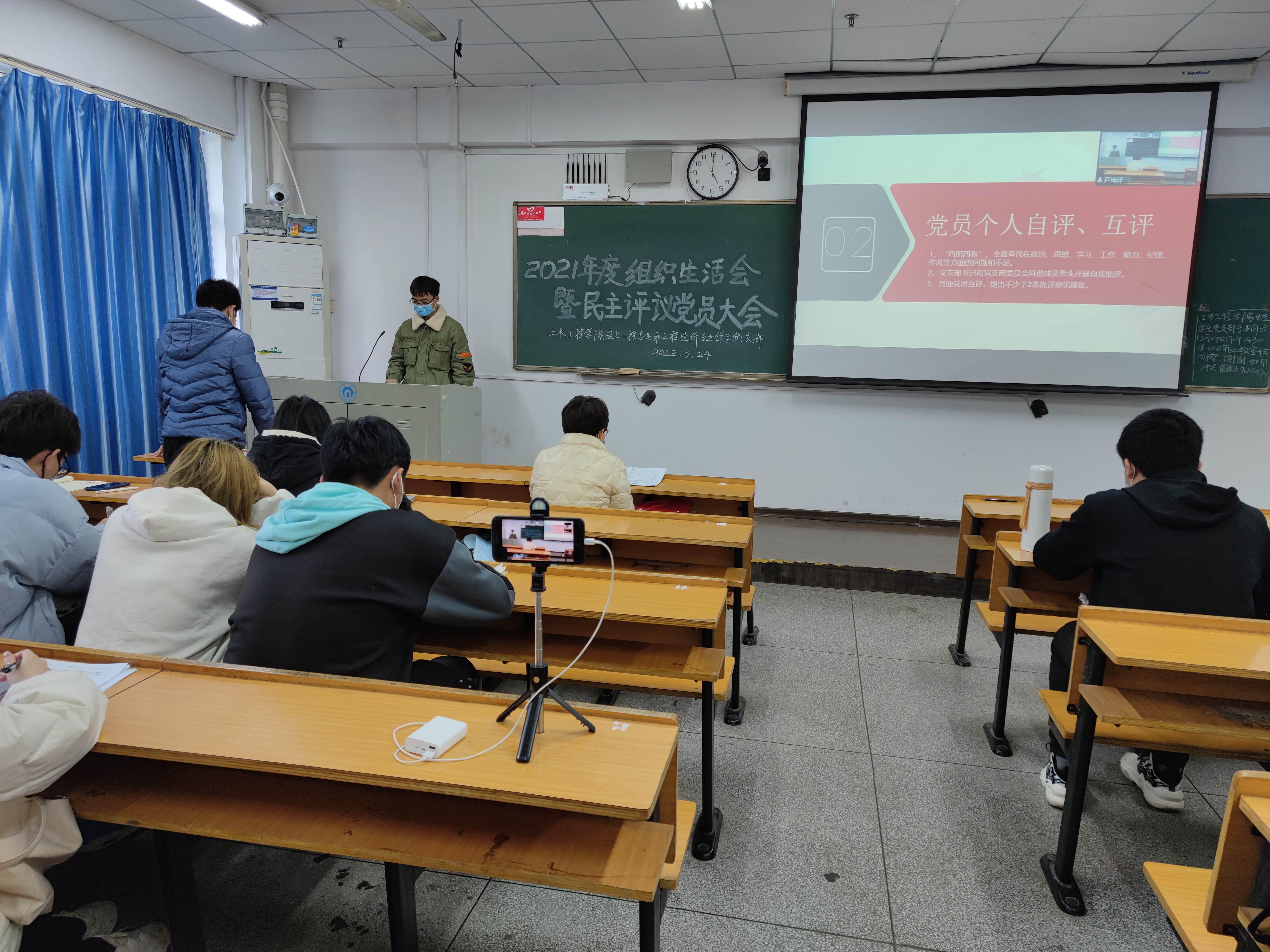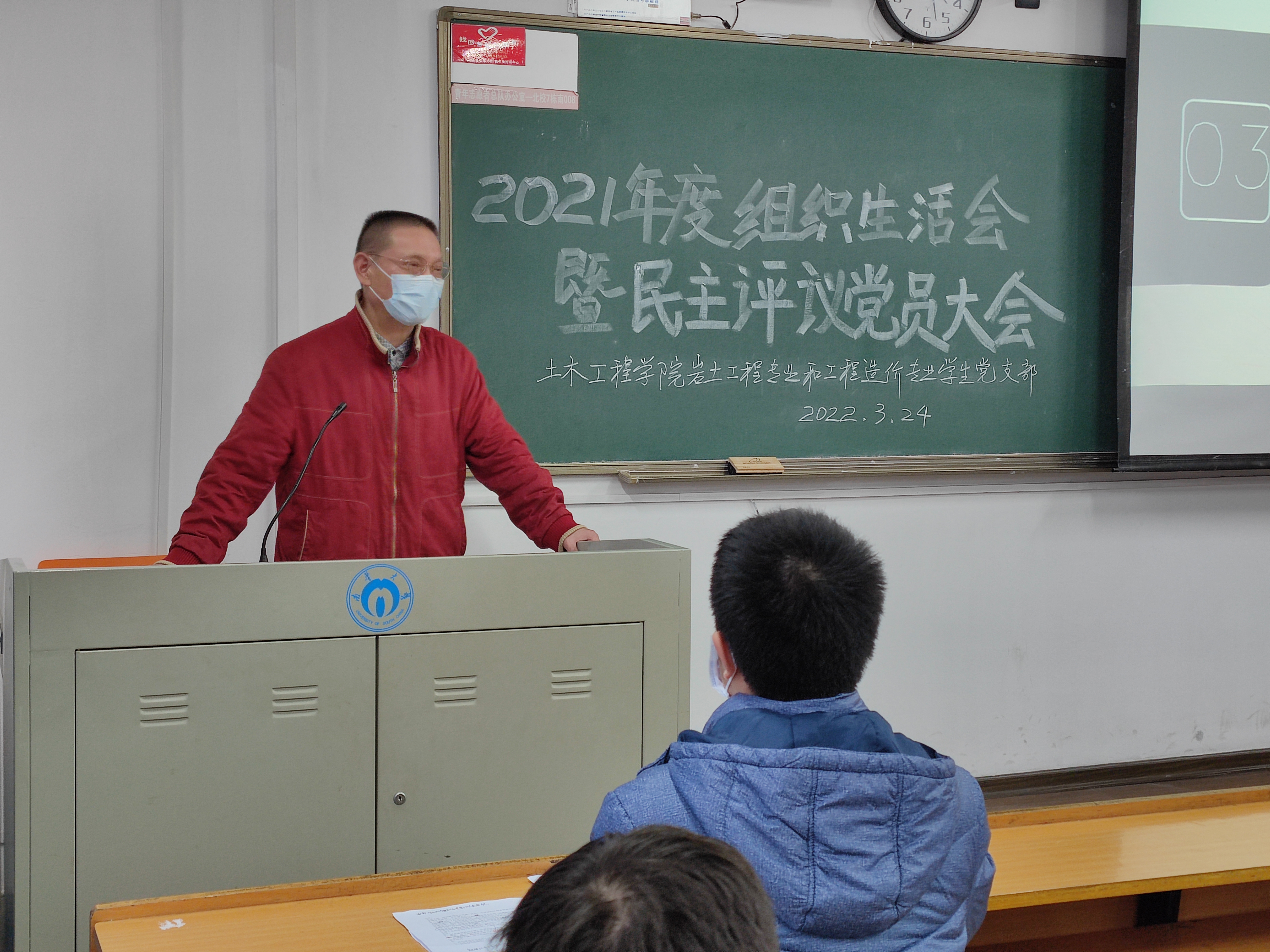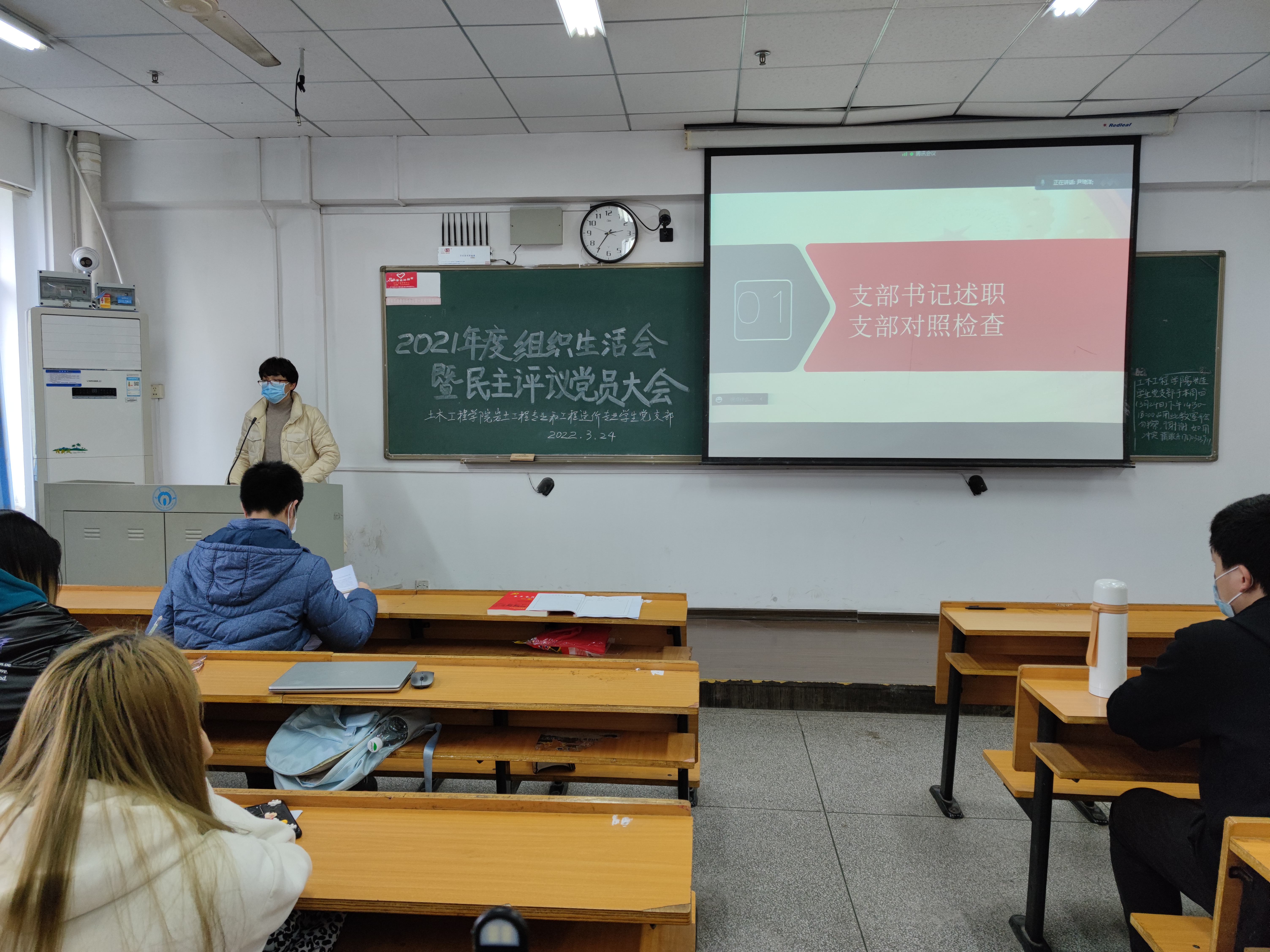 2022年3月24日14:30,英国365集团岩土工程专业和工程造价专业学生党支部在一教402召开2021年度组织生活会,并开展民主评议党员工作。会议由支部书记李翠新老师主持,院党委书记石建军老师到会指导点评,支部全体党员参加会议。