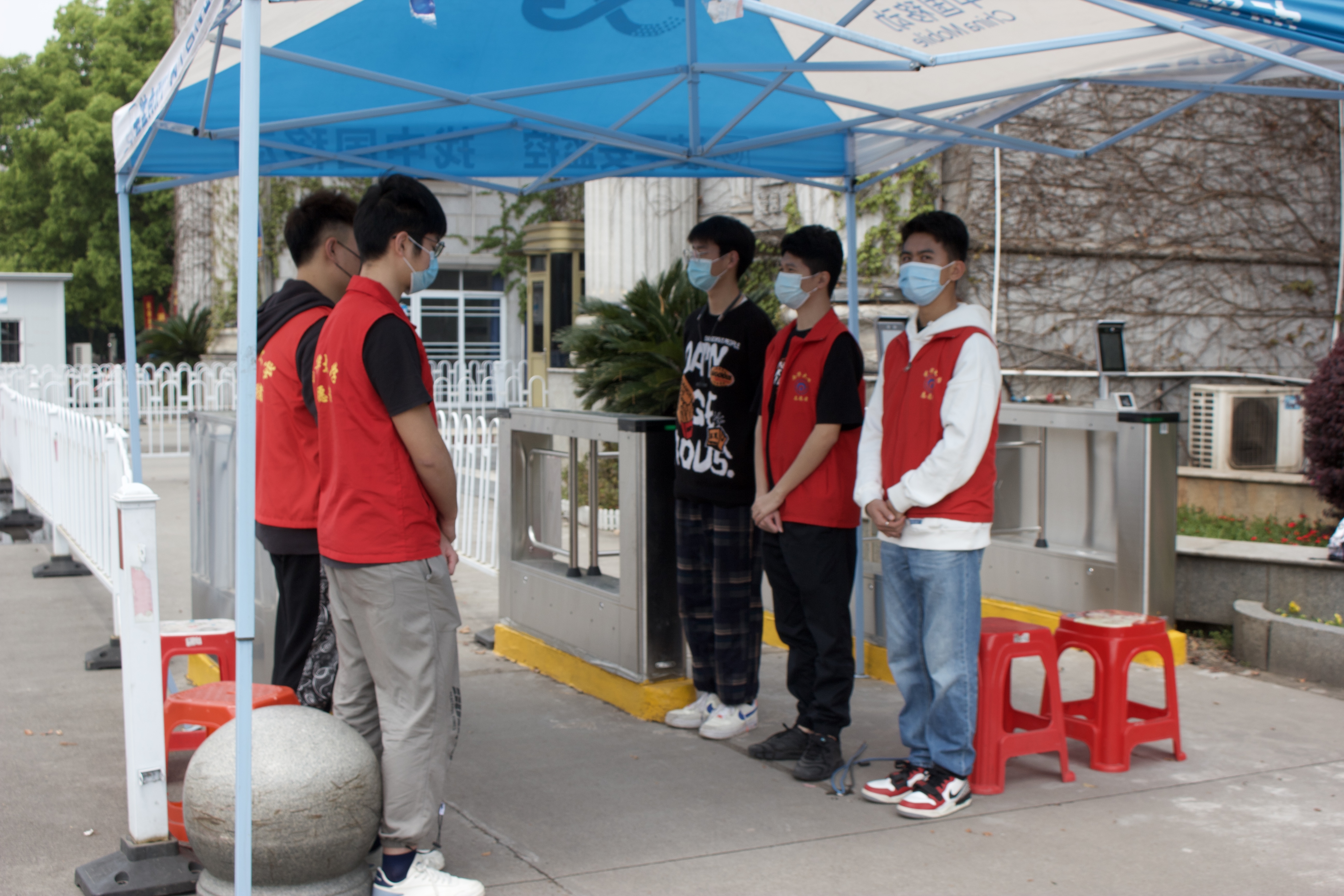 本次志愿活动中,学生志愿者们按小组分别在南华楼、校门口、宿舍楼围墙旁等主要通道分时段轮流值班,对进出校园人员进行仔细核查;提醒引导上课师生进入教室正确佩戴口罩、保持安全距离;对翻越围墙出校以及点外卖同学进行制止与劝导。此外,院青年志愿者工作部的成员还对南华楼各教室、楼梯扶手进行消毒工作。活动全程,辅导员老师和志愿者们按时到岗、认真工作、严格把关,切实执行学校疫情防控的工作要求,落实疫情期间校园封闭管理制度。