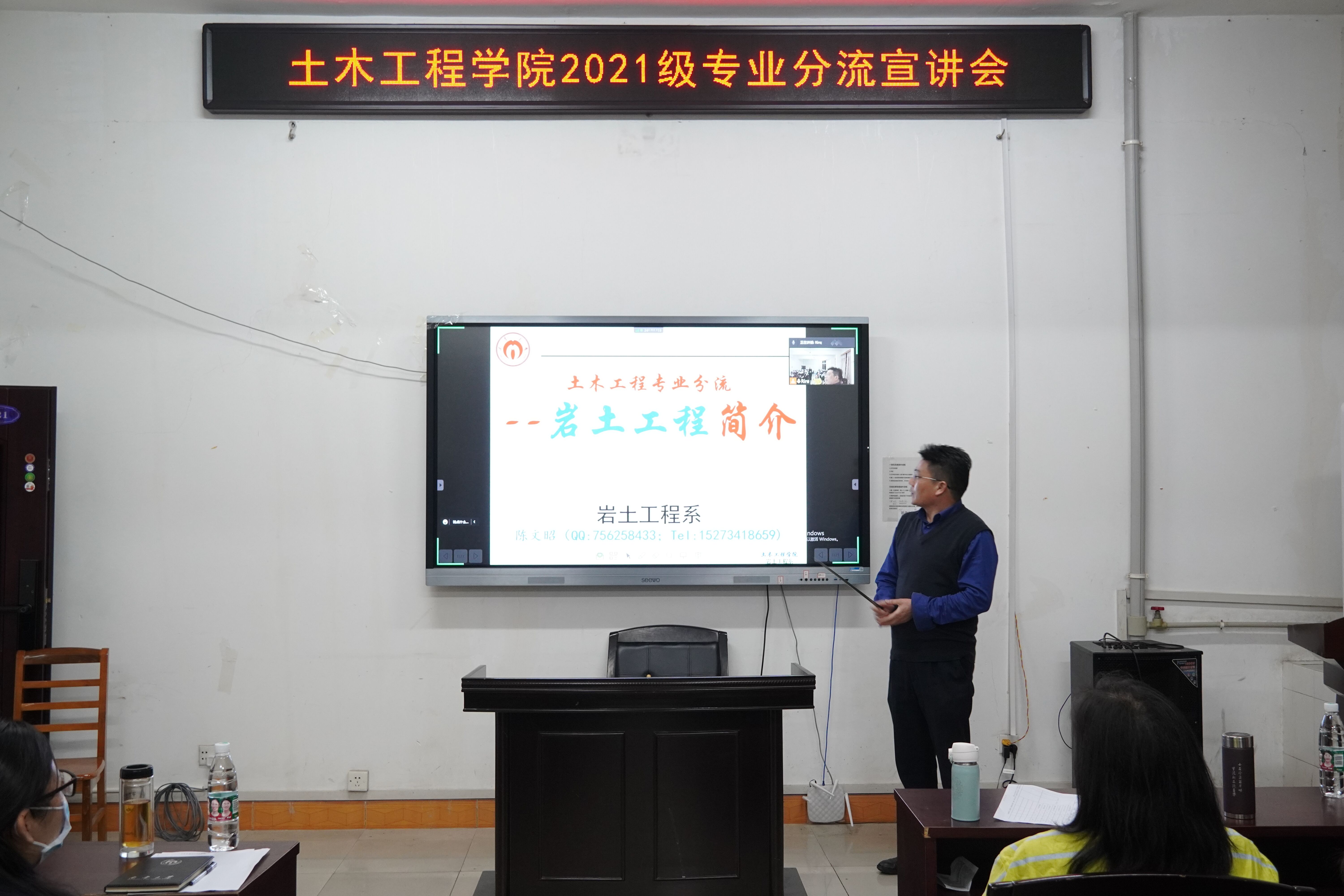 2022年4月I4日晚7点30分,英国365集团2021级专业分流宣讲会于土木楼四楼会议室召开。英国365集团党委书记石建军、党委副书记唐素芝、副院长兼建筑工程系主任孙冰、道路桥梁与渡河工程系主任李明、建筑环境与能源应用工程系主任陈国杰、给排水科学与工程专业系主任谢水波、建筑电气与智能化系主任张振峰、岩土工程系主任陈文昭、造价工程系主任聂春龙及团委书记吴旦出席此次会议。本次专业分流会以线上线下相结合的方式进行,取得了良好的效果。