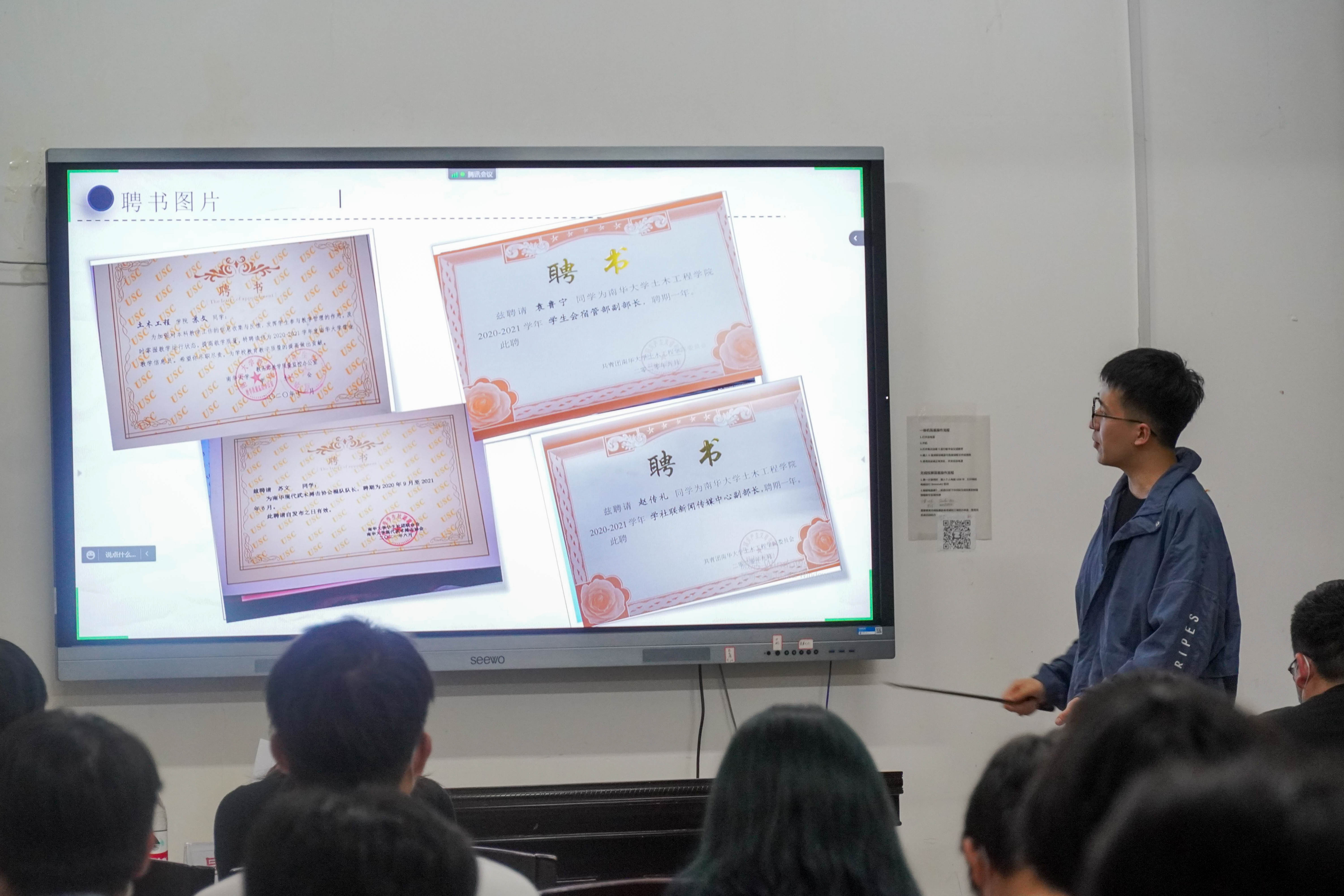在主持人宣读了答辩要求及评分细则后,各团支部代表按顺序进行答辩。答辩过程中,各团支部代表以PPT的形式向评委老师展示了班级学习情况、思想政治、社会实践、特色活动等方面的综合表现。答辩的内容丰富,材料详实;各团支部代表在台前侃侃而谈,整场答辩会氛围热烈,掌声不断,充分展现了英国365集团优秀学子的精神风貌。团支部答辩结束后,评委老师们就答辩内容提出问题并给予改进建议。