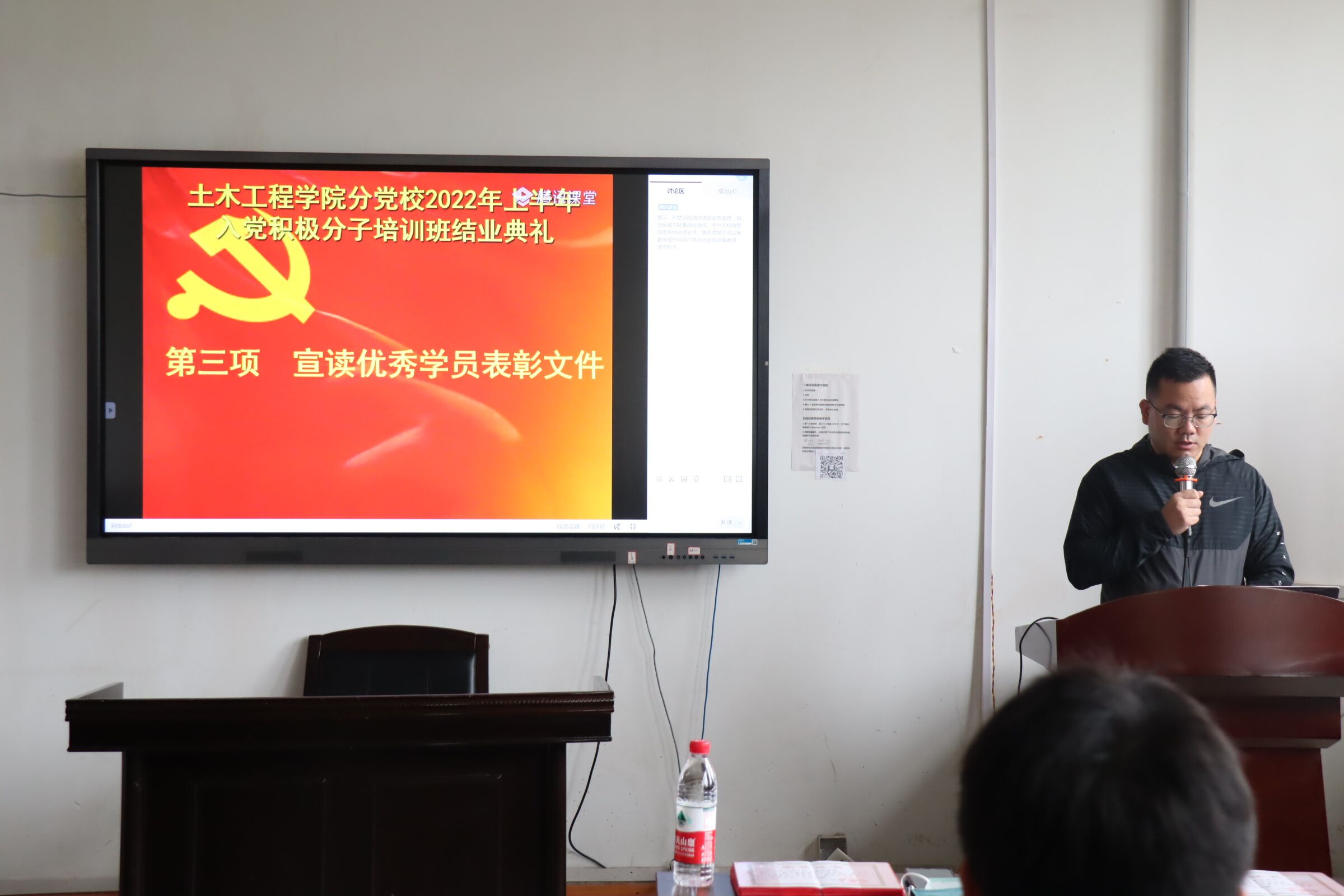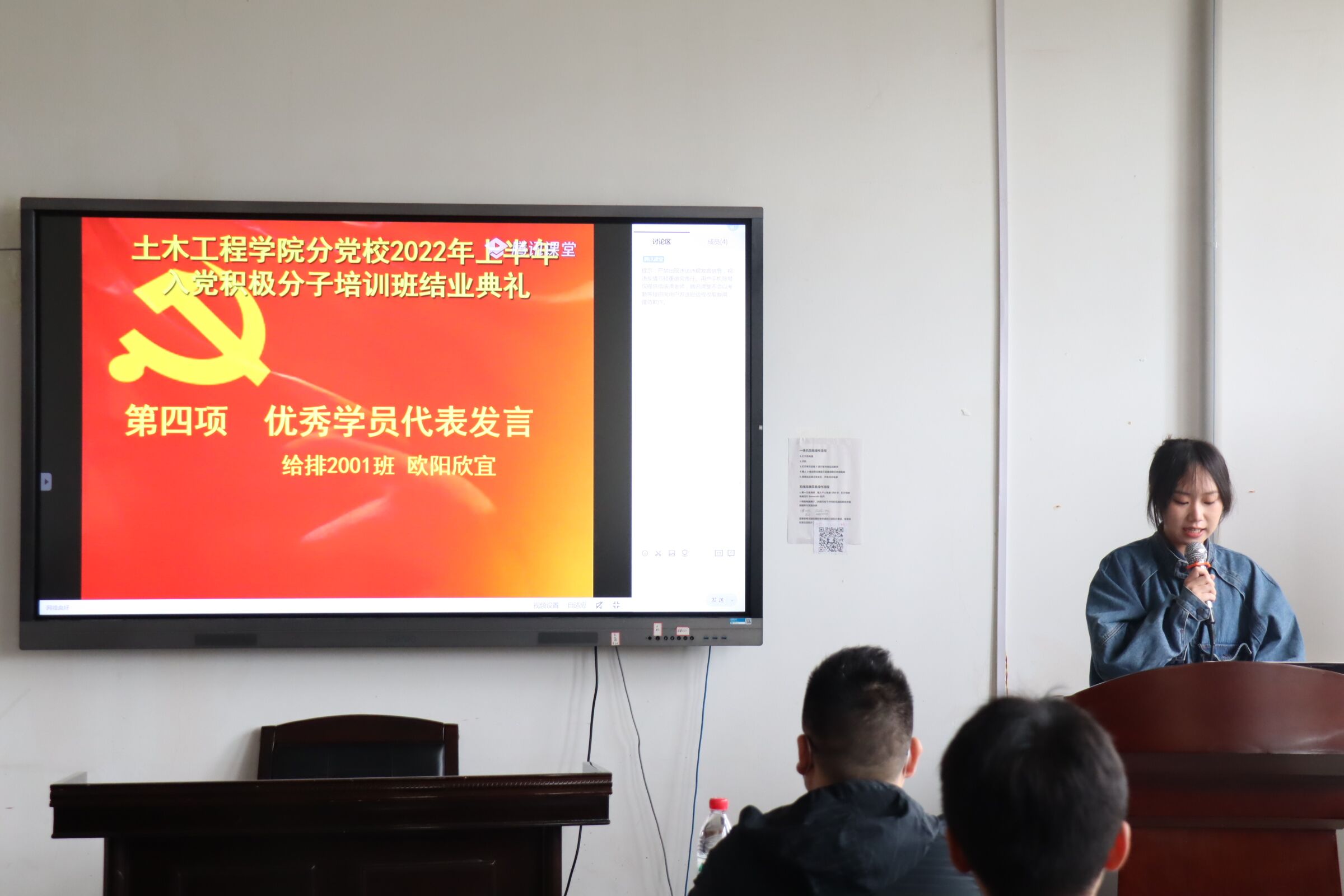 此次结业典礼,不仅是对入党积极分子学习成果的验收,还为入党积极分子以后的学习给予动力。相信入党积极分子在以后的学习和工作中都能用党员的标准要求自己,为学院做出贡献。