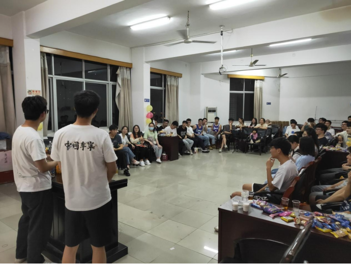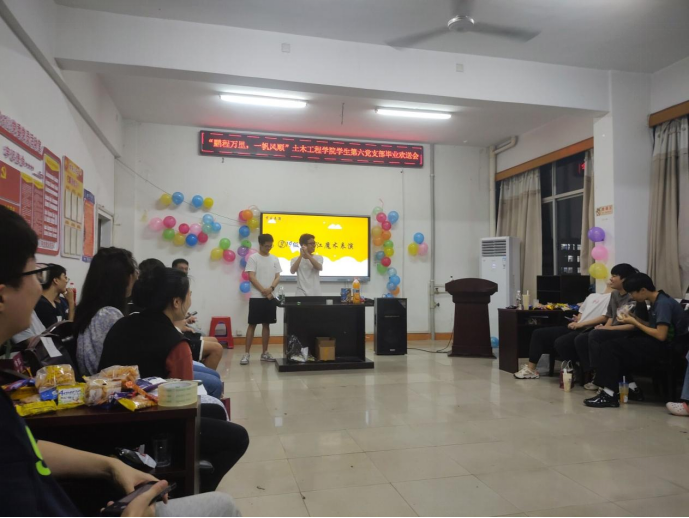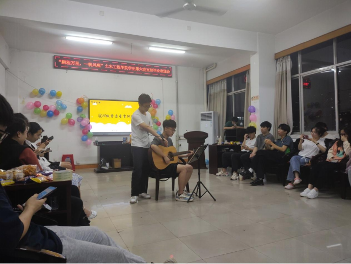 首先由支部书记刘华老师作开场讲话,希望各位同志珍惜离校前相聚的时光,并预祝本次欢送会顺利开展。欢送会的开始,由20级和19级学生党员依次为毕业生们献上合唱表演,歌声深入人心,情感真挚;其次段益江同志为大家进行了一出纸牌魔术表演,神奇的魔术一环套着一环,令大家瞠目结舌,拍手叫好;随后,曾启星同志为大家带来了一首吉他弹唱,不禁引得全场合唱,歌声随着跳动的音符飞升起来流泄在屋内各角落。