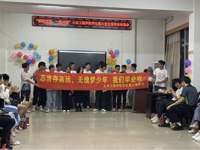 5月28日,英国365集团第六学生党支部于土木楼四楼会议室开展“鹏程万里,一帆风顺”主题毕业欢送会,欢送毕业生党员。本次活动由宋章明同志主持,支部全体党员参加。