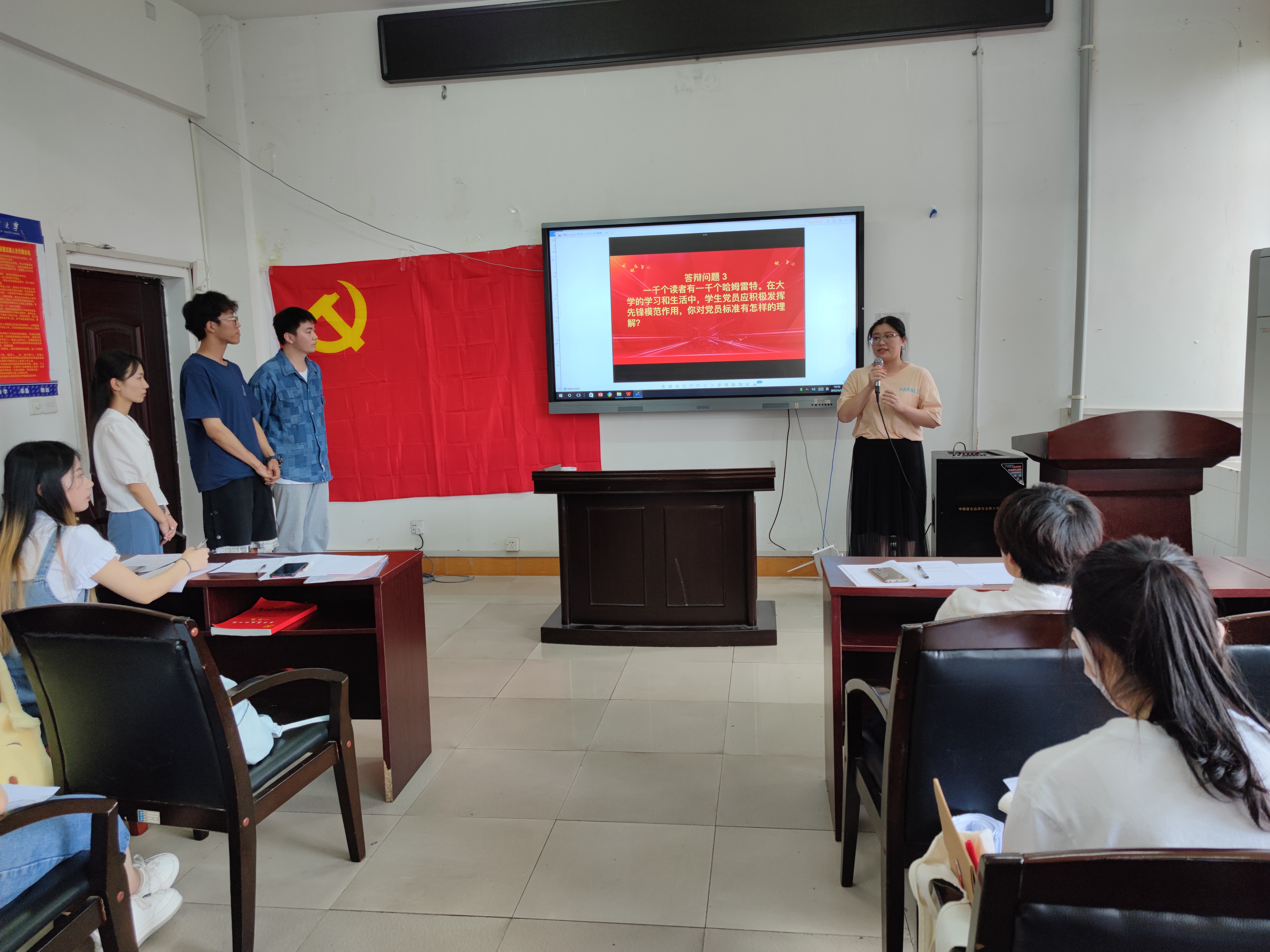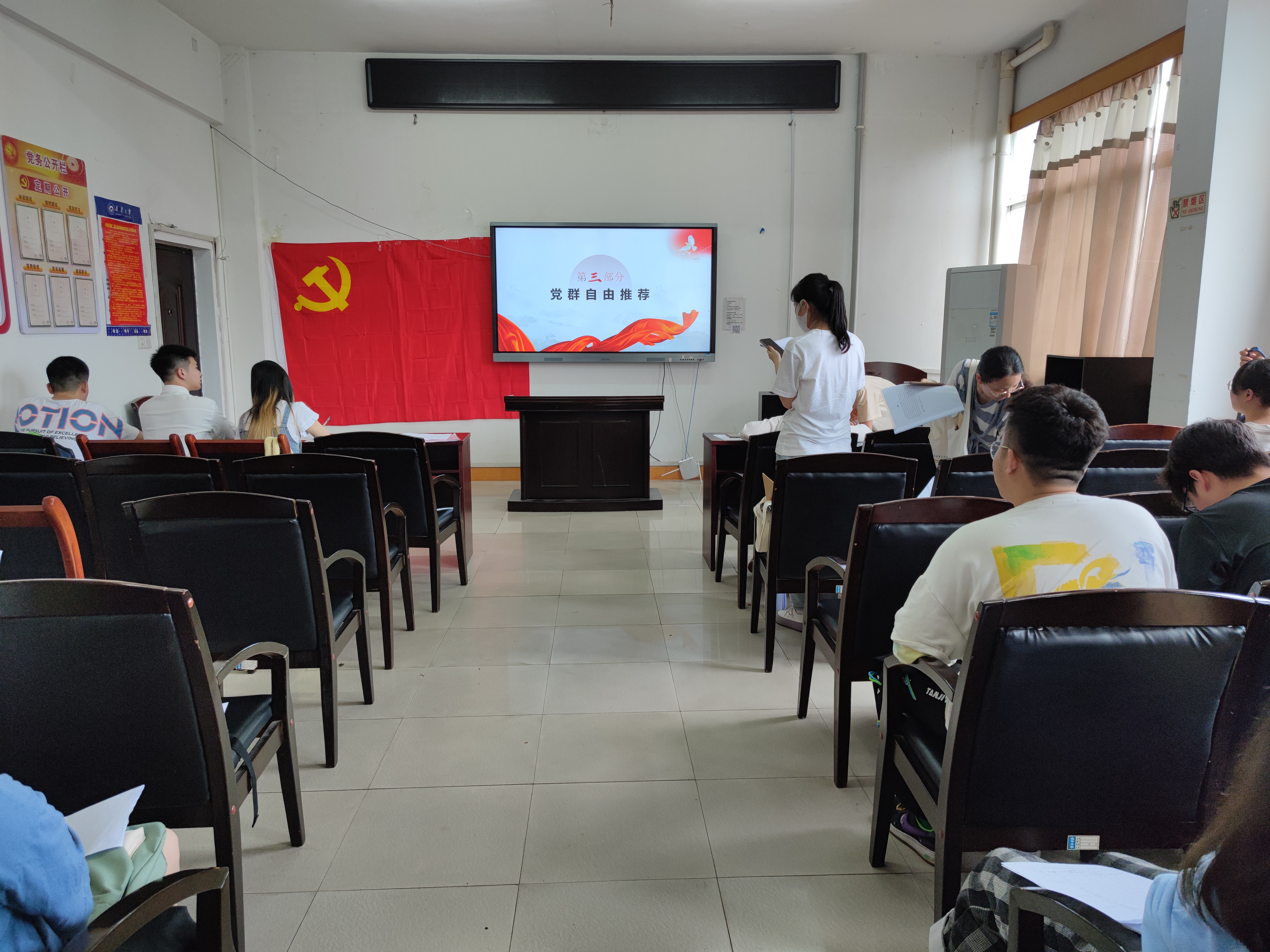 会议伊始,支部书记李翠新老师强调了推优答辩会的目的、要求和流程。随后,拟发展对象分两组依次进行个人陈述和现场答题,他们结合自身情况,围绕思想政治、学习工作、获奖情况、志愿服务、青年大学习等多方面情况进行陈述。接着由小组代表随机抽取一个题目,发展对象依次现场答辩,大部分发展对象针对所抽题目进行了逻辑清晰、具有党性修养的回答。与会人员根据发展对象汇报及答辩情况,本着严肃负责的态度进行评议推荐,并通过无记名投票方式进行推选。支委会成员及党员代表根据汇报、投票情况,结合平时思想、学习和工作等方面的表现进行综合考量,最终确定钟华杰等7名同学为2022年上半年拟发展对象,报上级党组织预审。