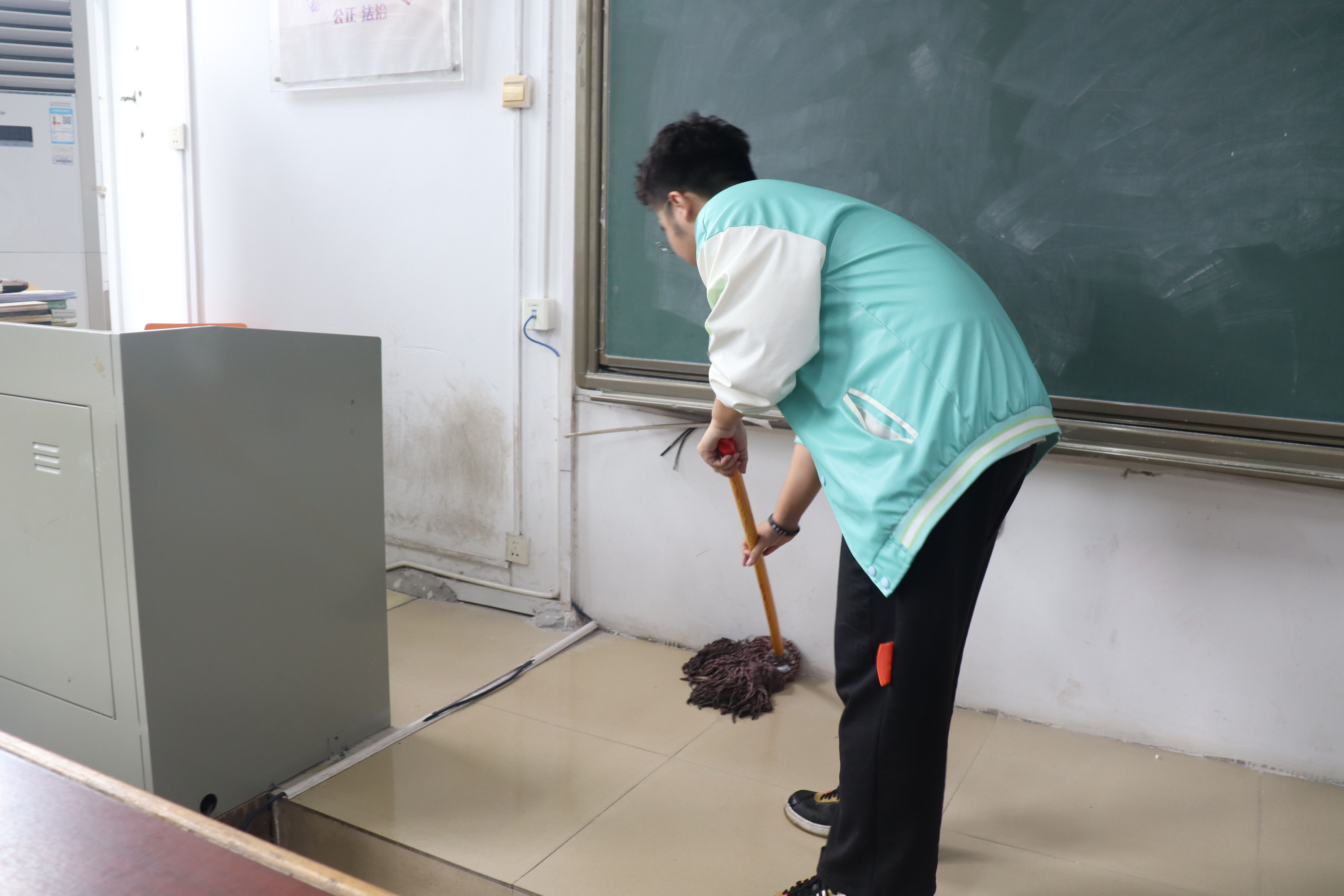 5月27日中午12点,英国365集团于南华楼部分教室展开清扫工作。各教室负责人准时到达活动地点并按要求展开卫生打扫工作。打扫过程中,各负责人分工明确,干劲十足,有序快速地完成了教室卫生的打扫工作。