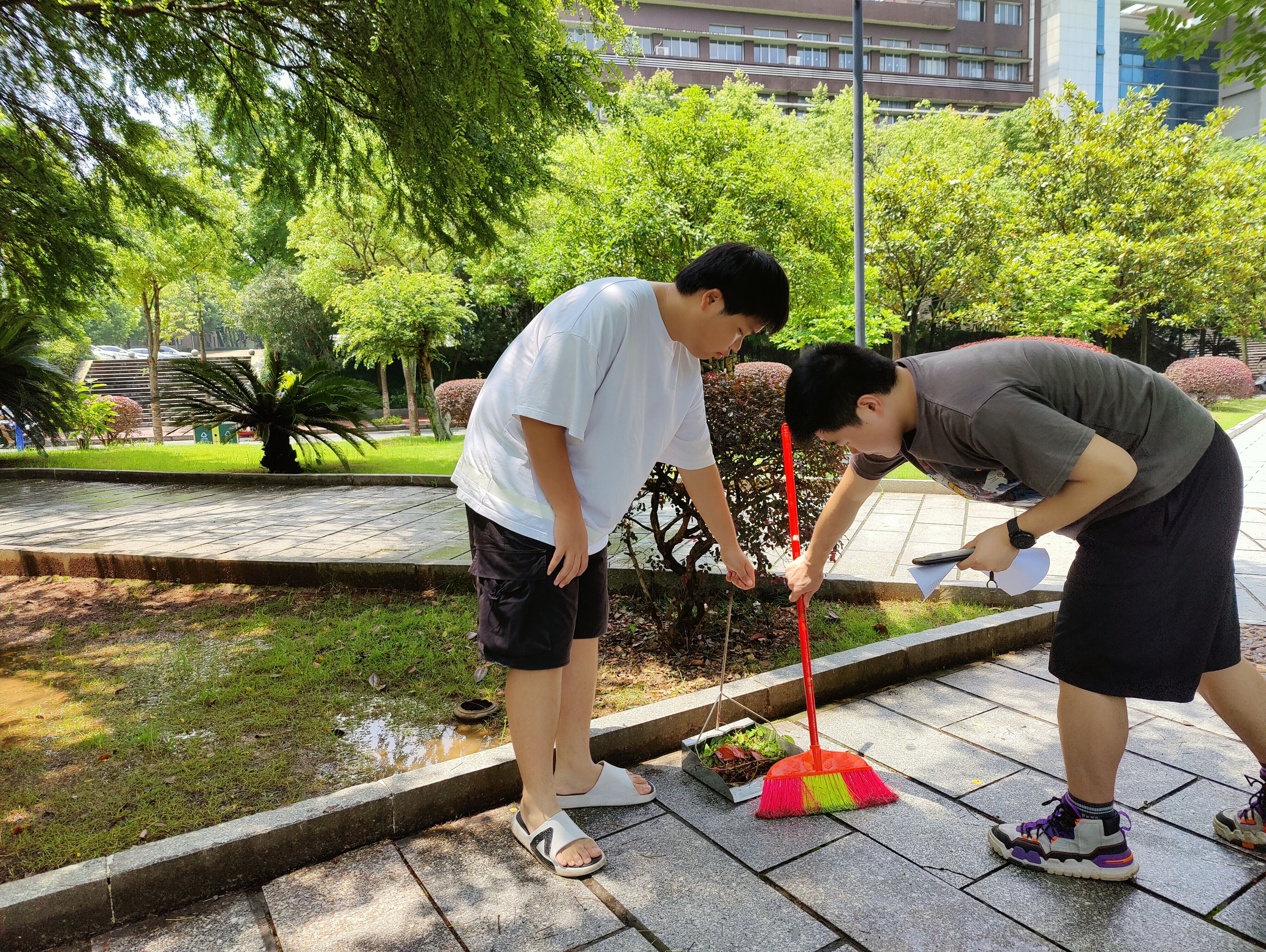 5月29日上午11点,英国365集团于南华园开展区域美化工作。工作前,负责打扫的人先行集合,分小组并发放清洁工具,分配工作任务。工作当中,大家秩序井然,合理分工,南华园在大家的打扫下焕然一新。