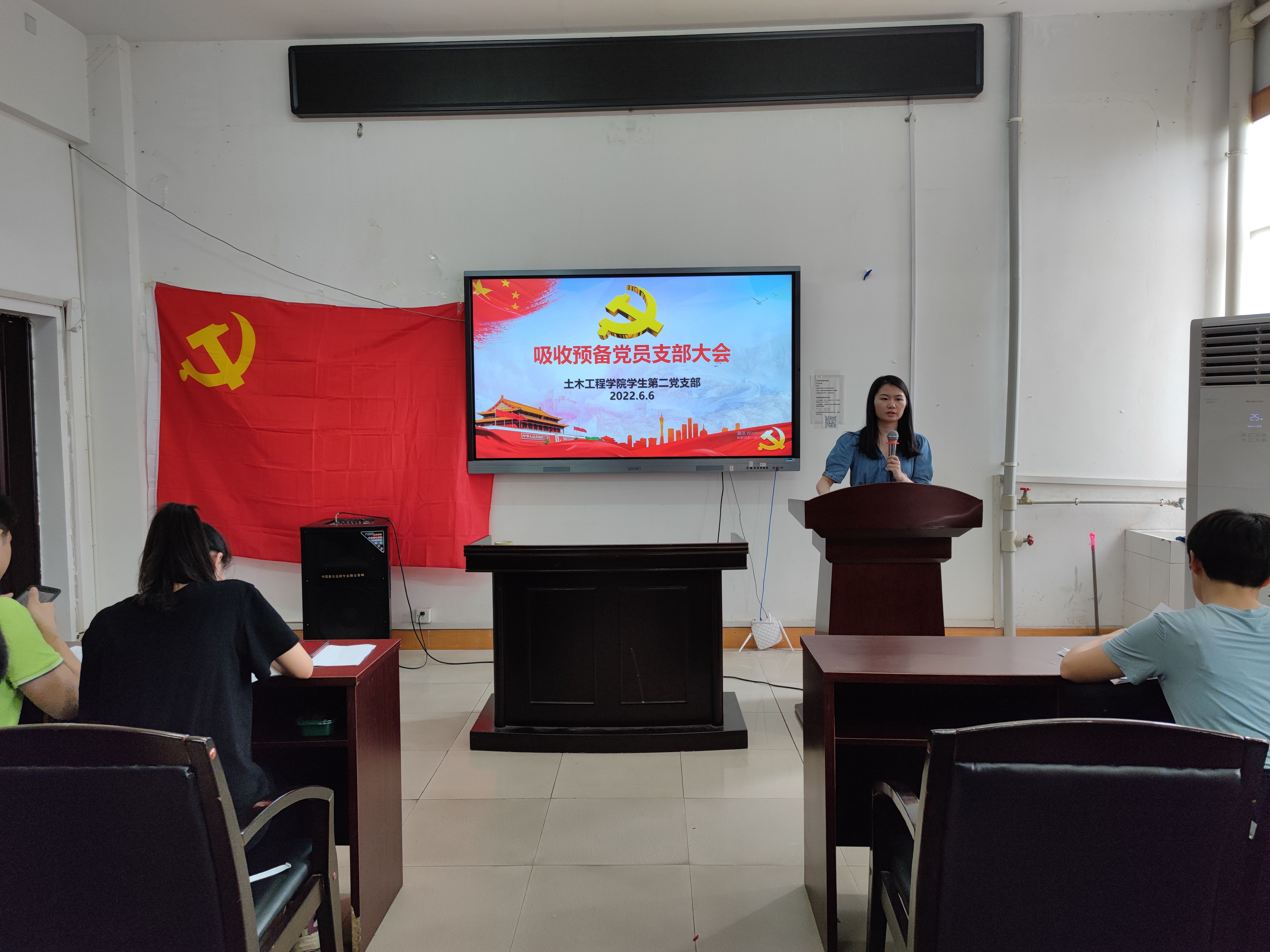 2022年6月6日15:00,英国365集团学生第二党支部在土木楼四楼会议室召开吸收预备党员暨支部委员补选大会。会议由支部副书记谢倩兰同志主持,全体党员、发展对象参与会议。