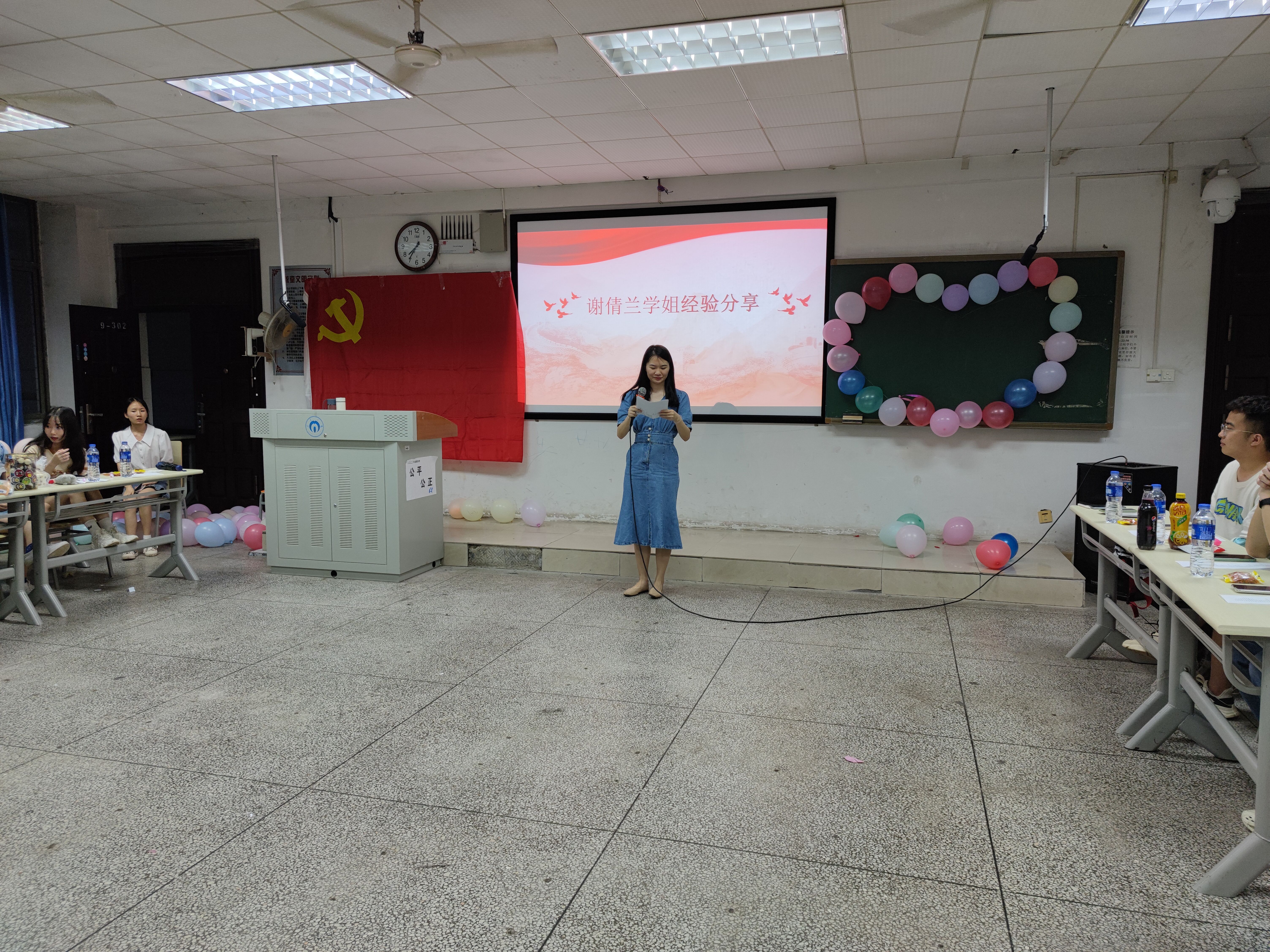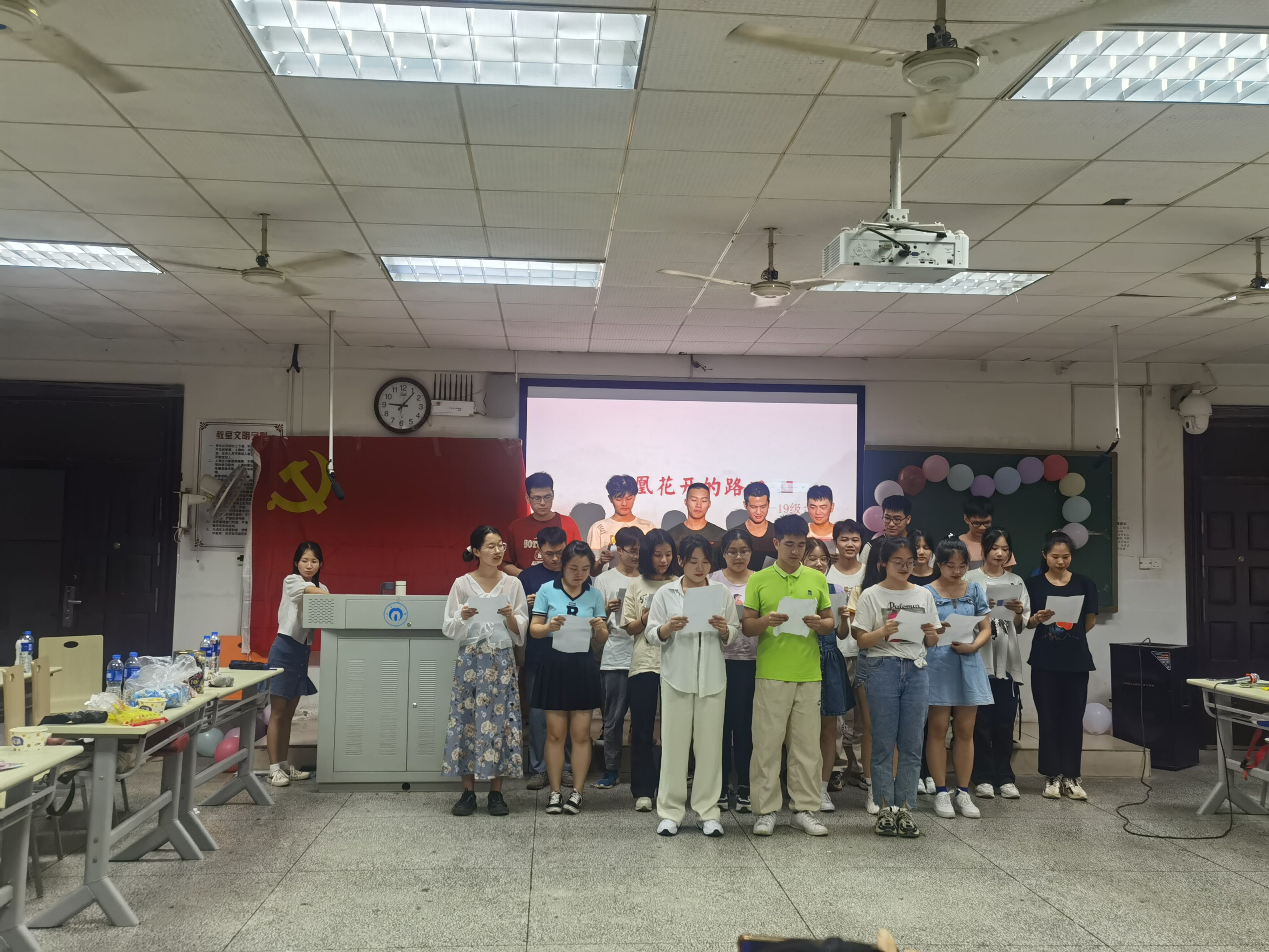 本次活动分四个环节:经验分享,节目表演,支部书记总结寄语,重温入党誓词。谢倩兰、张潇、文双辉三名同志为在座的学弟学妹们分享自己大学四年来的心得体会,结合自身经历分享了一些关于学习工作,考研及保研的经验,鼓励学弟学妹们保持初心,怀着谦虚的态度,带着自信心和上进心对待未来的学习和生活,去完成自己的目标和理想。接着在节目表演环节中,罗唯铭同志带来独唱《爱如潮水》,点燃了全场的气氛,20级学弟学妹带来合唱《稻香》,戴扬同志带来舞蹈《honey》,曾佳怡同志带来独唱《夏天的风》,19级学弟学妹带来合唱《凤凰花开的路口》,在节目中间穿插各种小游戏,让此次活动更加热闹、有趣,在此期间还为学长学姐赠送祝福卡及礼物,表达对学长学姐们毕业的真切祝福。
