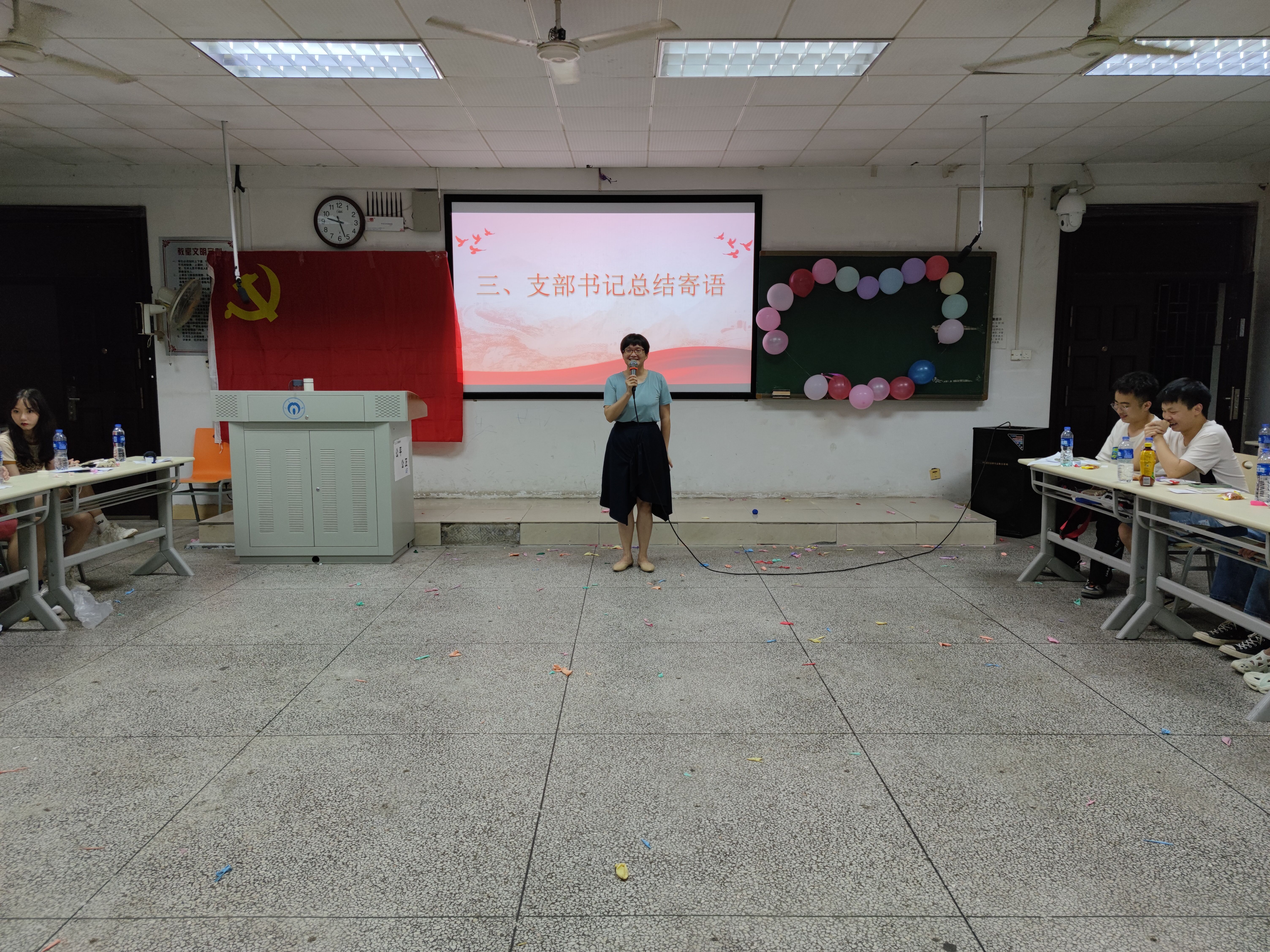 学生第二党支部书记吴旦老师对全体党员提出三点希望,希望全体党员能够细心工作、诚心待人、用心生活,在未来创造出更好的成绩。聚是一团火,散是满天星,党员的使命和责任永远只有进行时,学生第二党支部书记李翠新老师对支部全体毕业生党员表达了不舍和期望,希望大家不忘初心,保持热爱,脚踏实地,一步一个脚印走出自己的精彩人生。