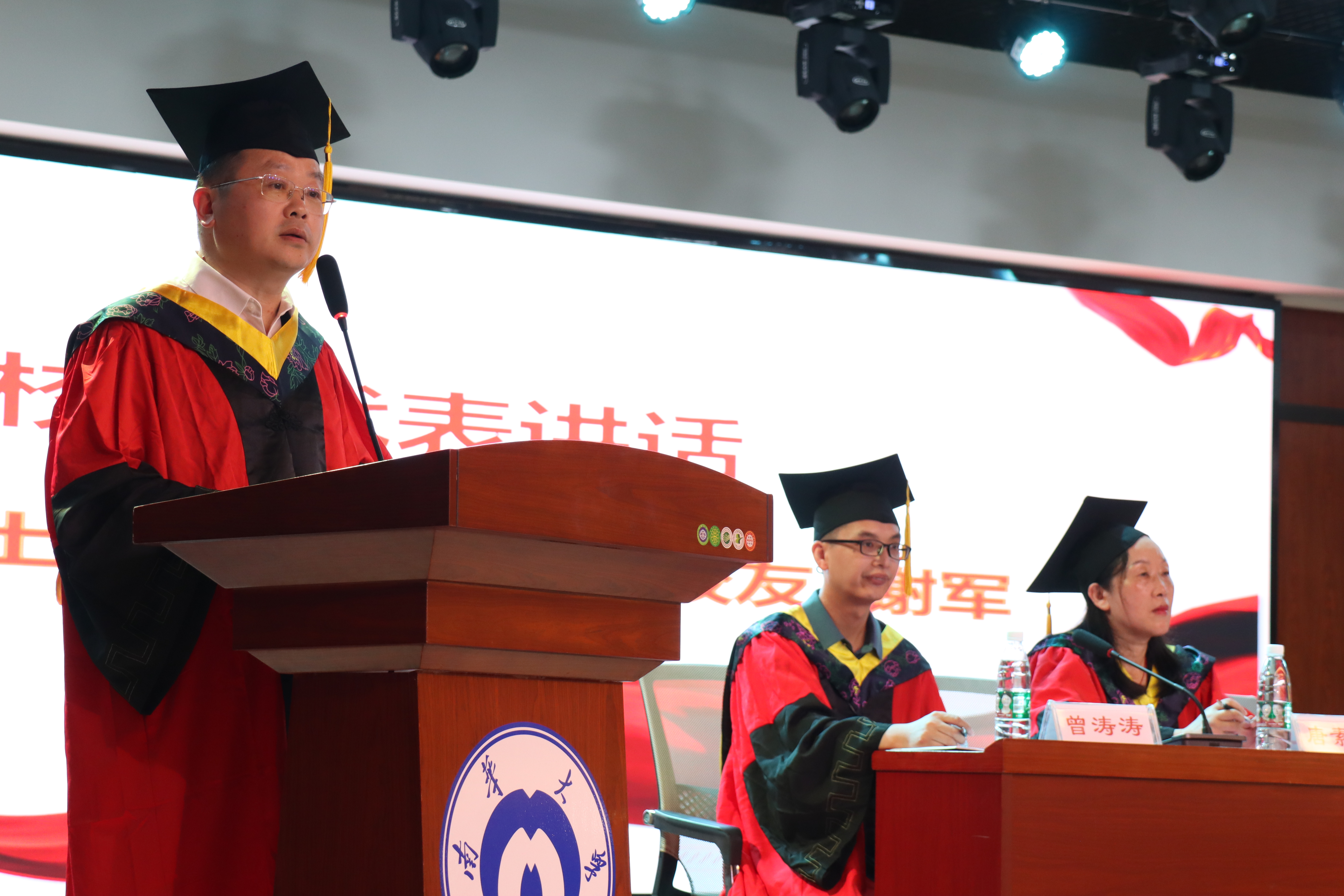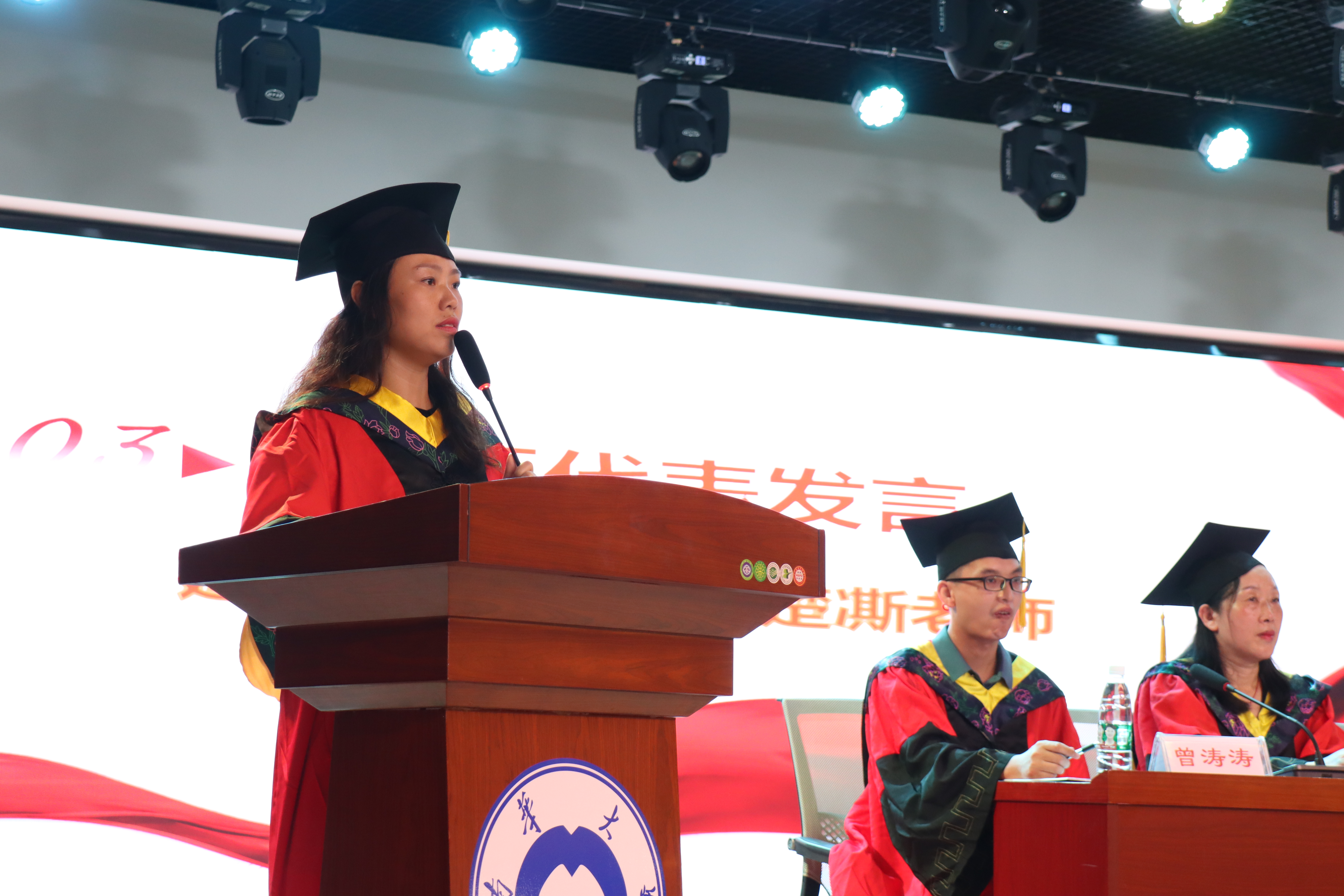 彭楚凘作为学院教师代表发言。她对全体毕业生表示衷心祝贺,并对他们表示殷切期望:希望他们不断创造人生辉煌,谱写青春的绚丽诗篇;希望他们为国家和人民作出更多贡献,做担当民族复兴大任的时代新人;希望他们常回母校看看,不忘母校培育情;希望他们青出于蓝而胜于蓝,实现前辈未完成的梦想。
