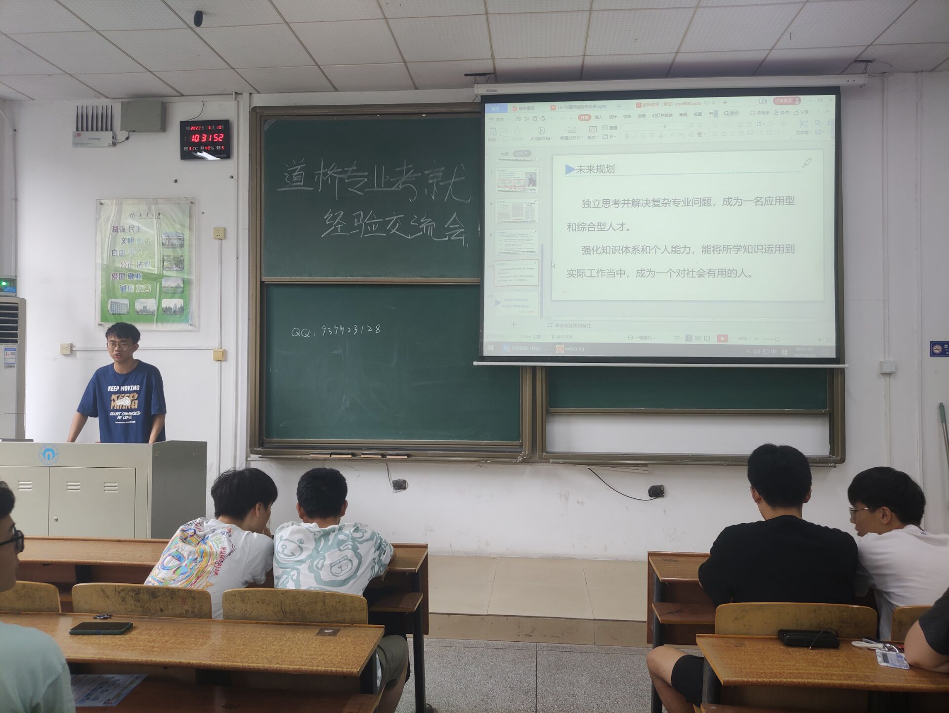 2022年6月10日上午10:00,英国365集团学生第六党支部于南华楼108召开道桥专业考研就业经验交流会。本次会议由赵树立主持,刘华老师、18级考研及就业党员代表、19级道桥全体同学参加。